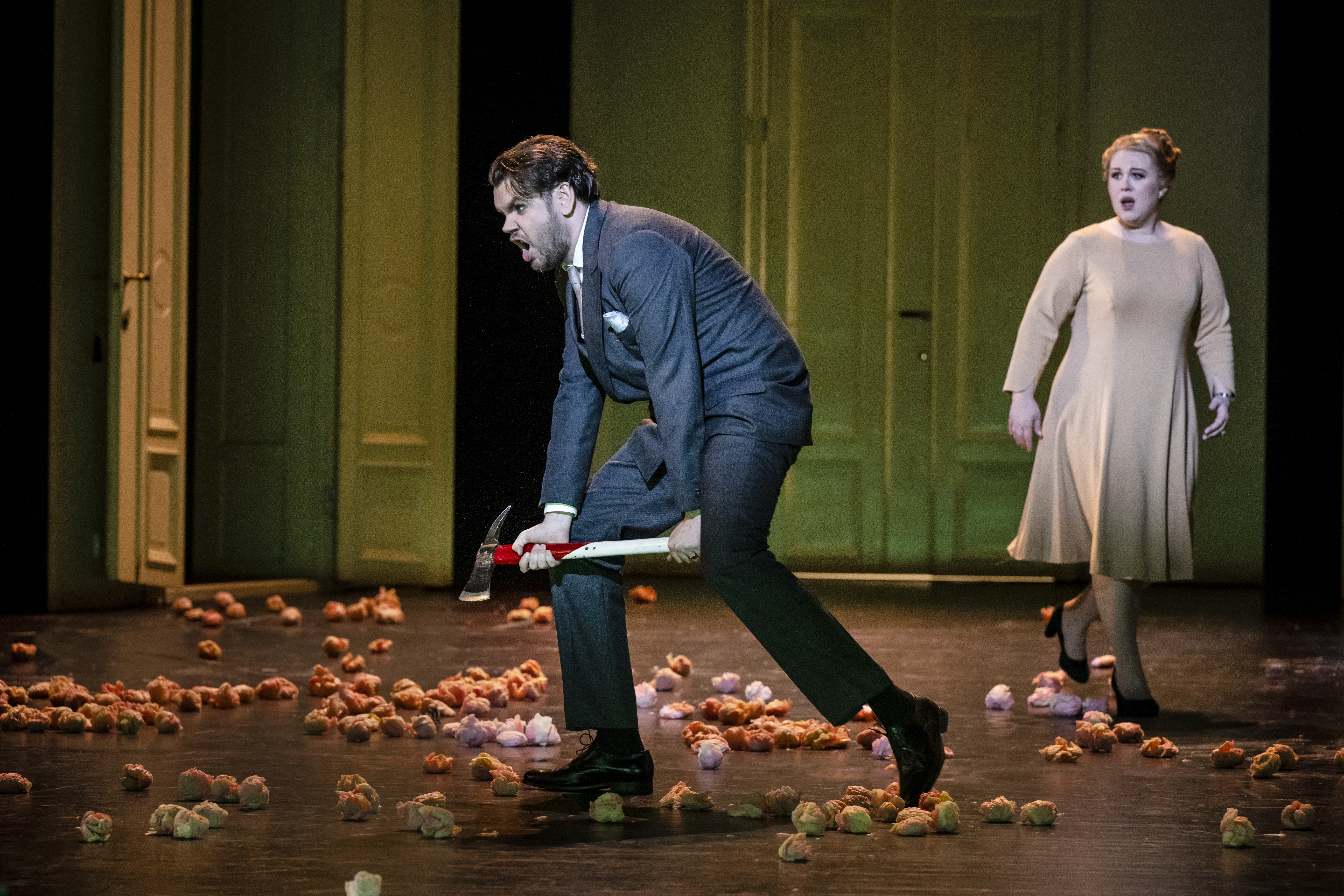 »Det finns situationer i Figaros bröllop som liknar tecknad film, slapstick, Chaplin. Vi skrattar, men så öppnar sig avgrunden och alla står där och skälver«, säger Ole Anders Tandberg, som både är regissör och scenograf för föreställningen. Han hävdar att man kan höra erotiken genom Mozarts musik:
