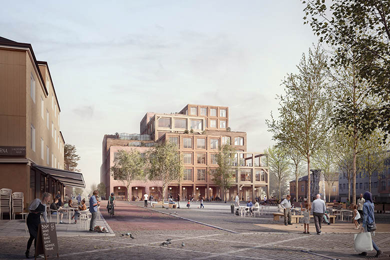 Det omarbetade förslaget har lägre våningsantal, byggnaden ska skugga mindre och andelen kontor och butiker är större än tidigare förslag.