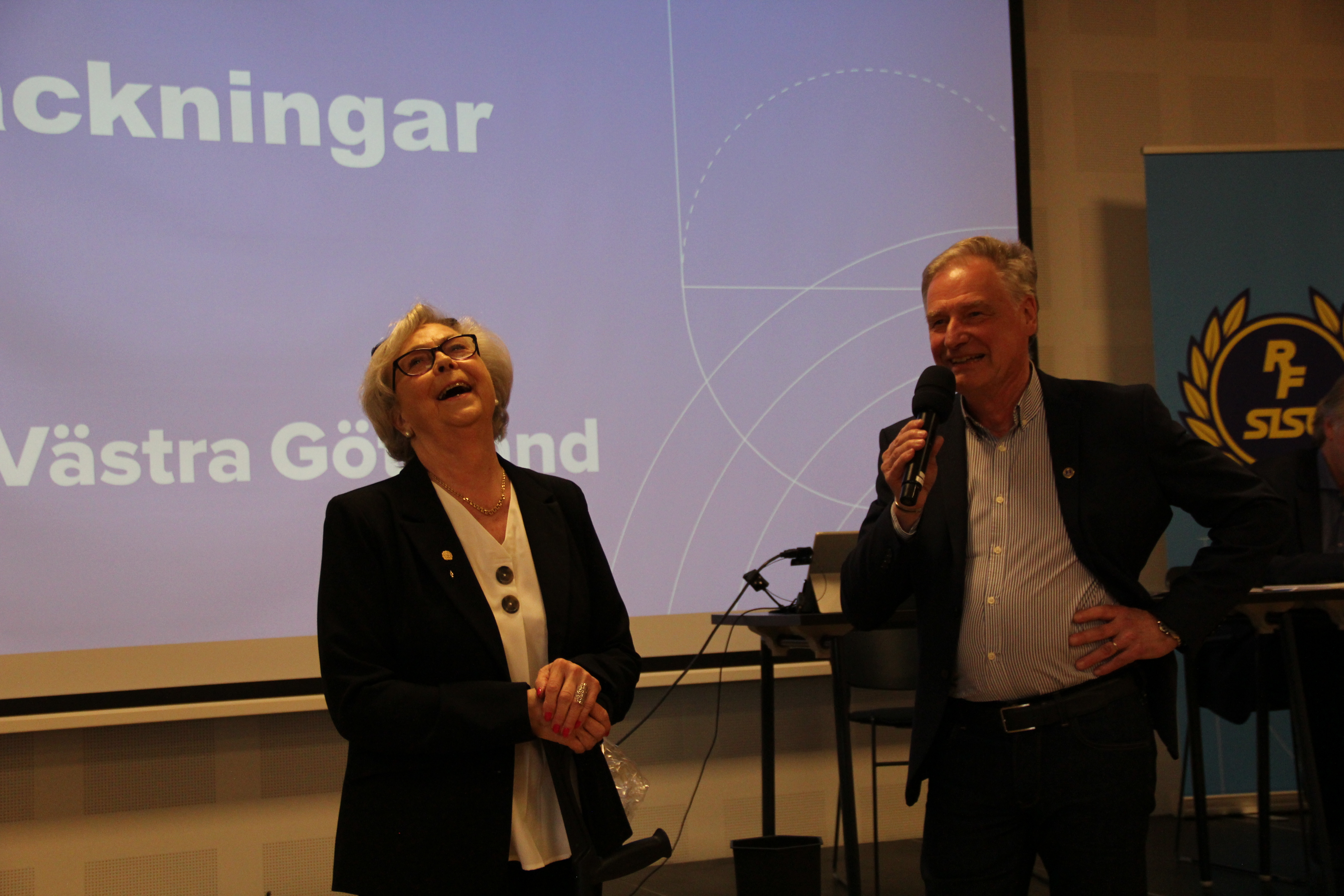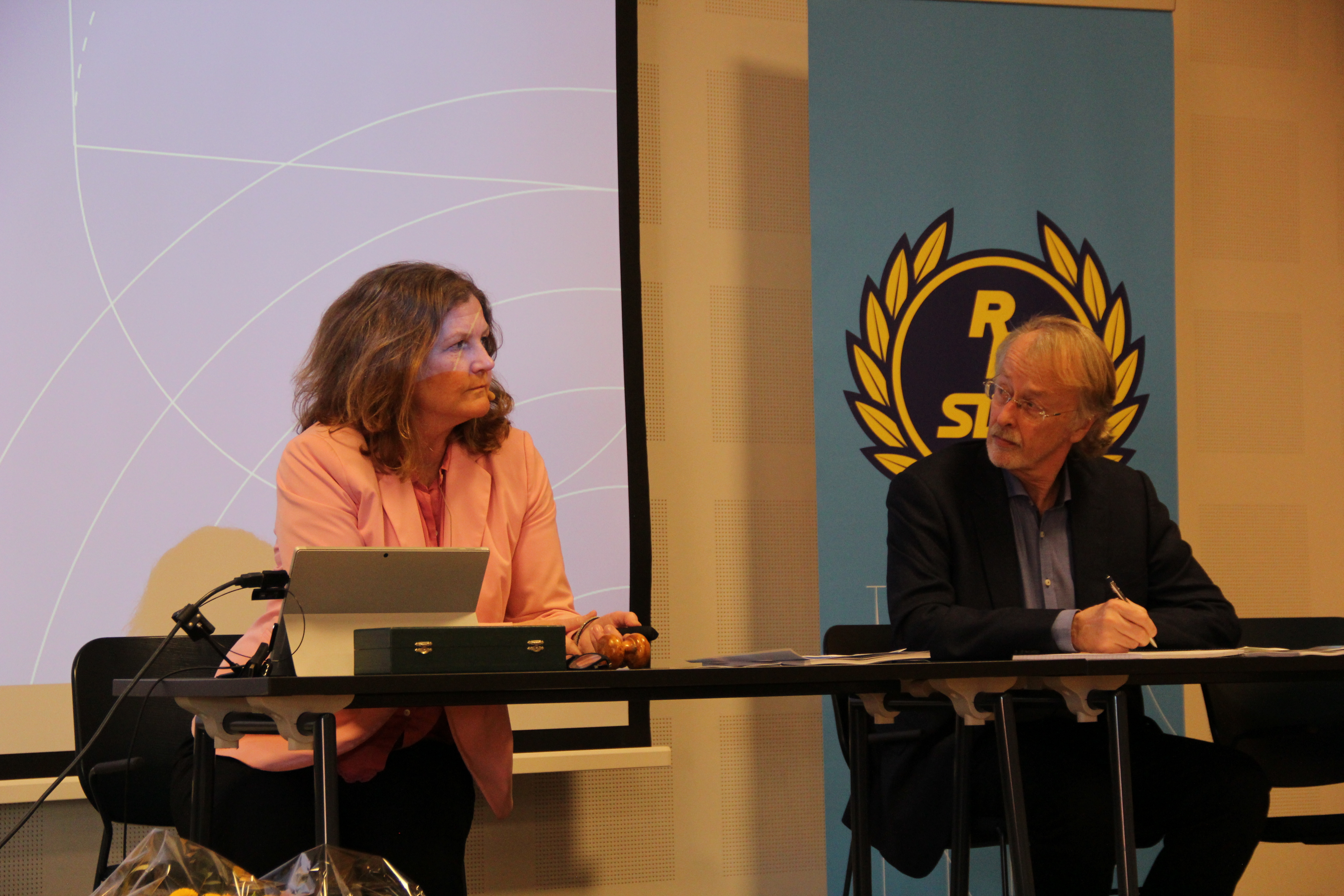 Helena Ransjö Alcenius och Anders Manheden, mötesordförande respektive mötessekreterare under årsstämman för RF-SISU Västra Götaland.
