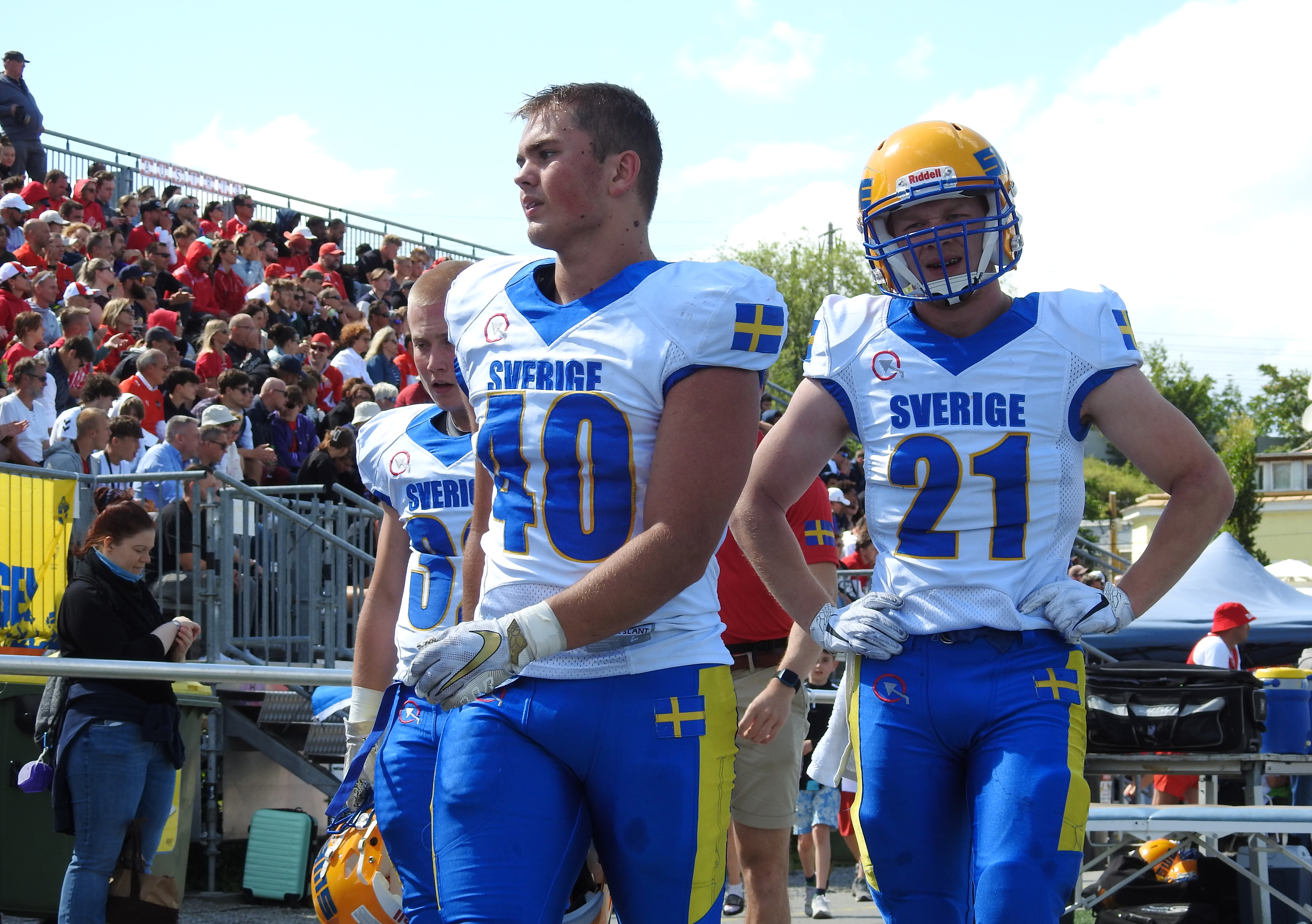 Max Lambert från Täby Flyers och Rasmus Frick från Limhamn Griffins gjorde de svenska poängen i finalförlusten, medan Ceasar Winsnes ledde det svenska försvaret med sju tacklingar.