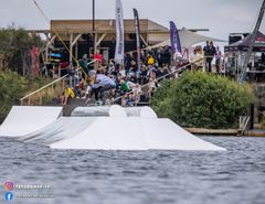 Att det var flow på vattnet förstår ni men att det var även ett underbart flow i organisationen är värt att nämna. Med 53 anmälda åkare är det svårt att få ihop kval och finaler på en dag och hålla ett tidsschema. Genom ett nytt bedömningssystem där man delar upp domarna på olika features och sätter viktning på samtliga features har bedömningstiden väsentligt reducerats. Cred till Nicolai P som införde denna förändring redan till SM-veckan i Linköping. Till detta kommer en otrolig insats från alla ideellt engagerade klubbmedlemmar, tävlingsledning, speaker, sekretariat och åkare. Man skapade ett enkelriktat flöde på bryggan och i god tid samlade man in åkare till nästkommande heat. En skadad åkare och en obstacle på glid var inte med i beräkningen men genom detta flow, både i domarledet, i den fysiska logistiken och tillmötesgående åkare, lyckades man hålla schemat så när som på en halvtimme.