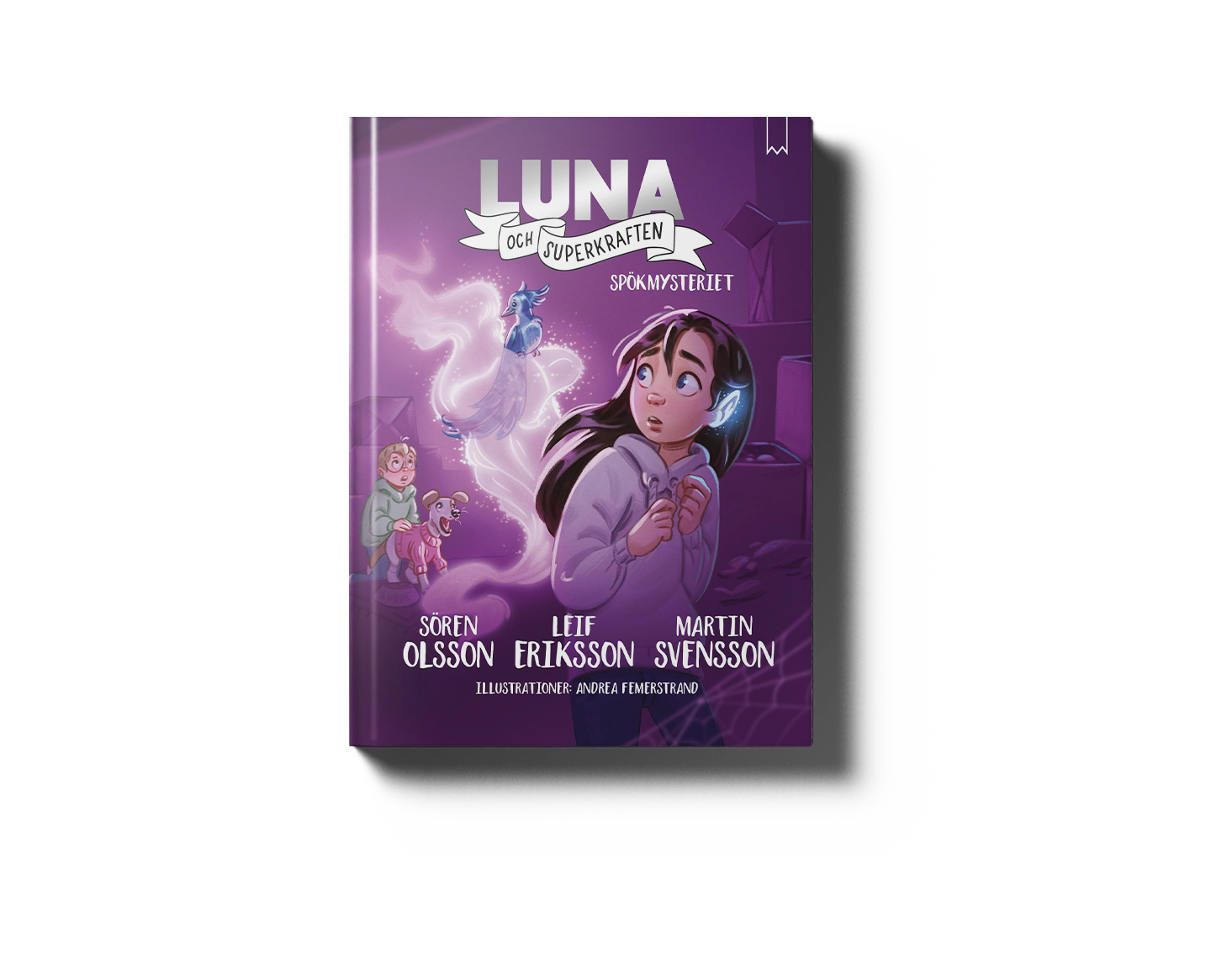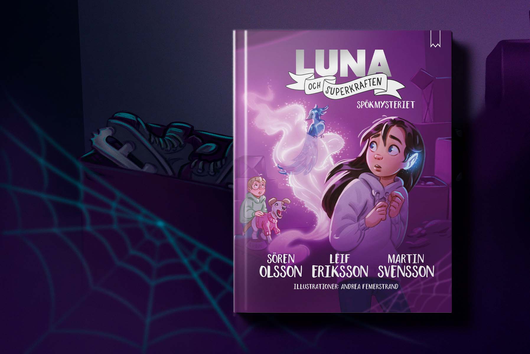 Spökmysteriet är den femte delen i serien Luna och superkraften. Bakom de populära barnböckerna står författartrion Sören Olsson, Martin Svensson och Leif Eriksson, som skildrar nioåriga Lunas högst ovanliga vardag i staden Lilla Vargudden. Bokserien har hyllats av såväl läsare som kritiker, och om den nya boken säger BTJ: ”Barnen visar prov på både handlingskraft, medkänsla och påhittighet och berättelsen har en stor portion humor. […] Trevligt att vara i Lunas sällskap.”