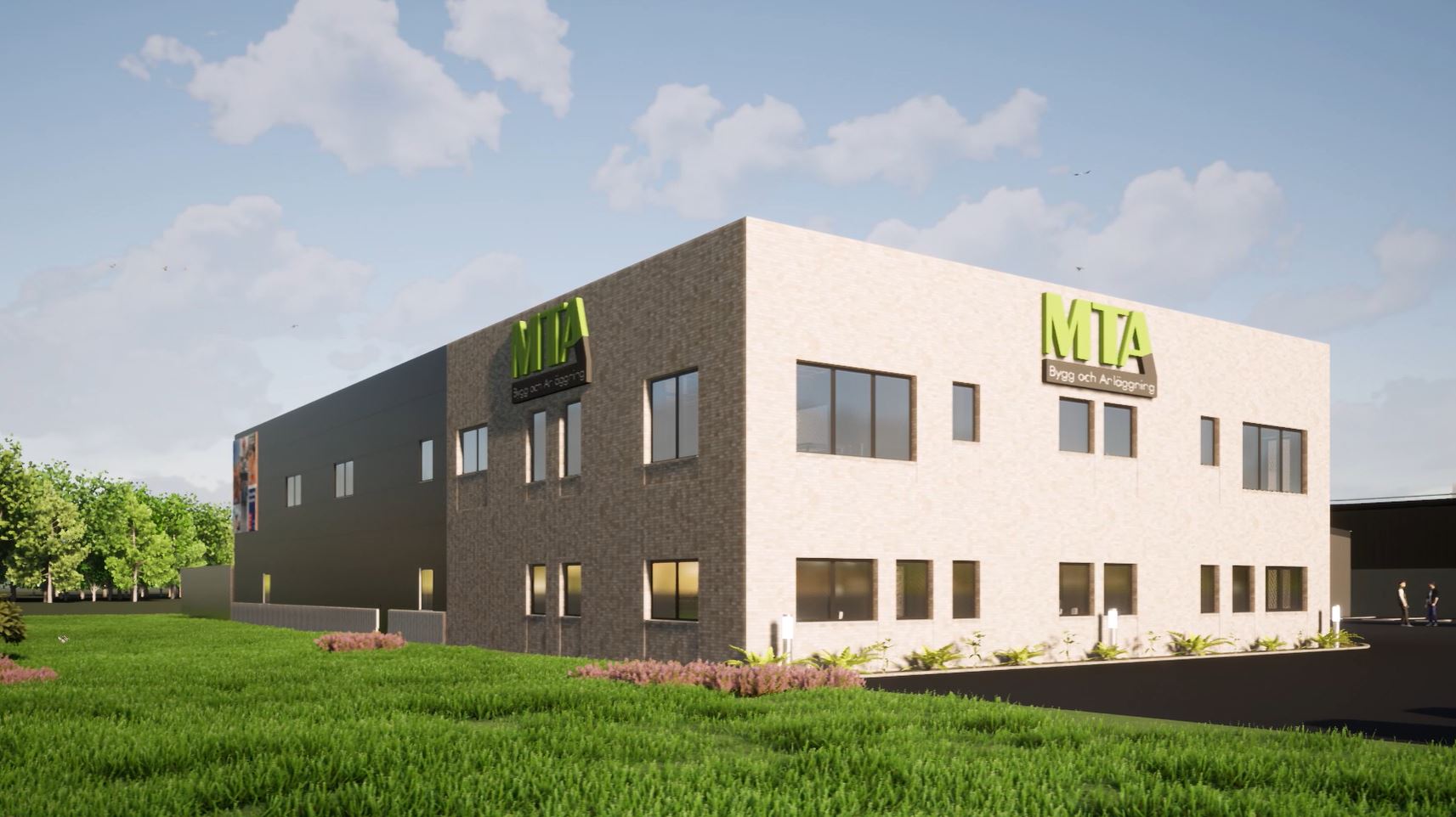 Ena halvan av verksamhetslokalerna kommer att inrymma MTA Bygg & Anläggning och den andra halvan MTA Maskin. Närheten till motorvägen är en fördel med satsningen, en annan är möjligheten till verksamhetsanpassade lokaler och nya möjligheter till expansion. Med det förstklassiga läget känns det bra att visa upp oss med tidlös, ljus tegelfasad. Ytorna uppmäter 600 kvm för kontorsdelen och lagerlokaler om 500 kvm.