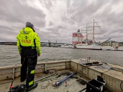 På väg ut mot Barken Viking för att ta sedimentprover. Foto: Andrea Håkansson