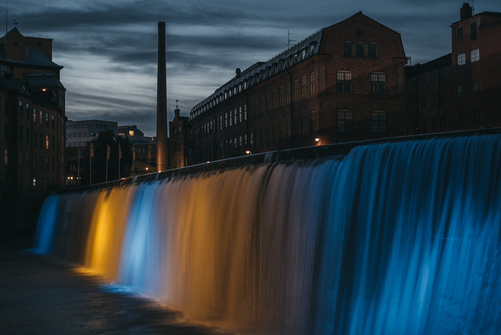 - Torsdag den 23 februari tänds vattenfallet i Industrilandskapet i den ukrainska flaggans färger, och vattenfallet kommer vara belyst till och med söndag den 5 mars.