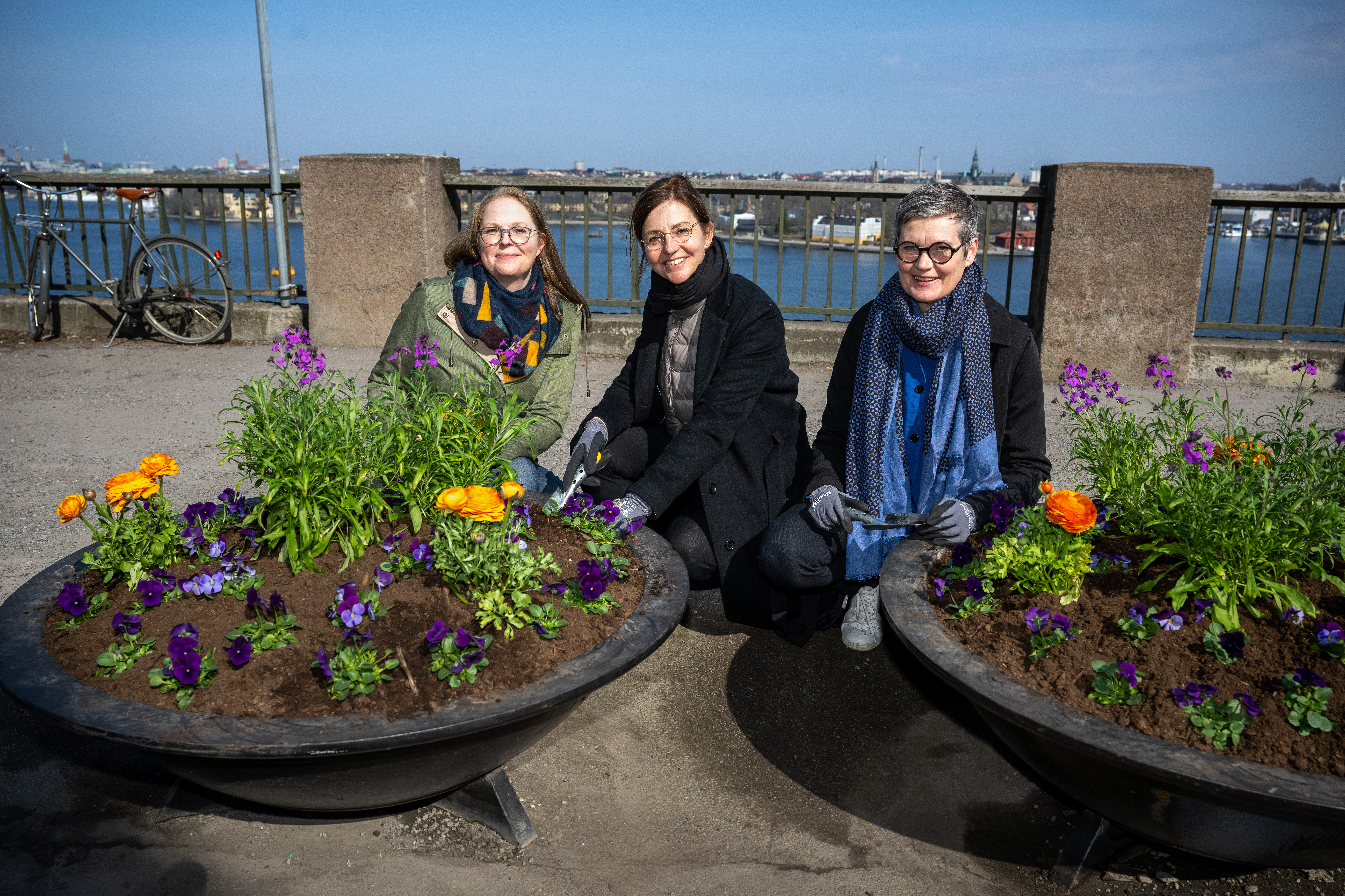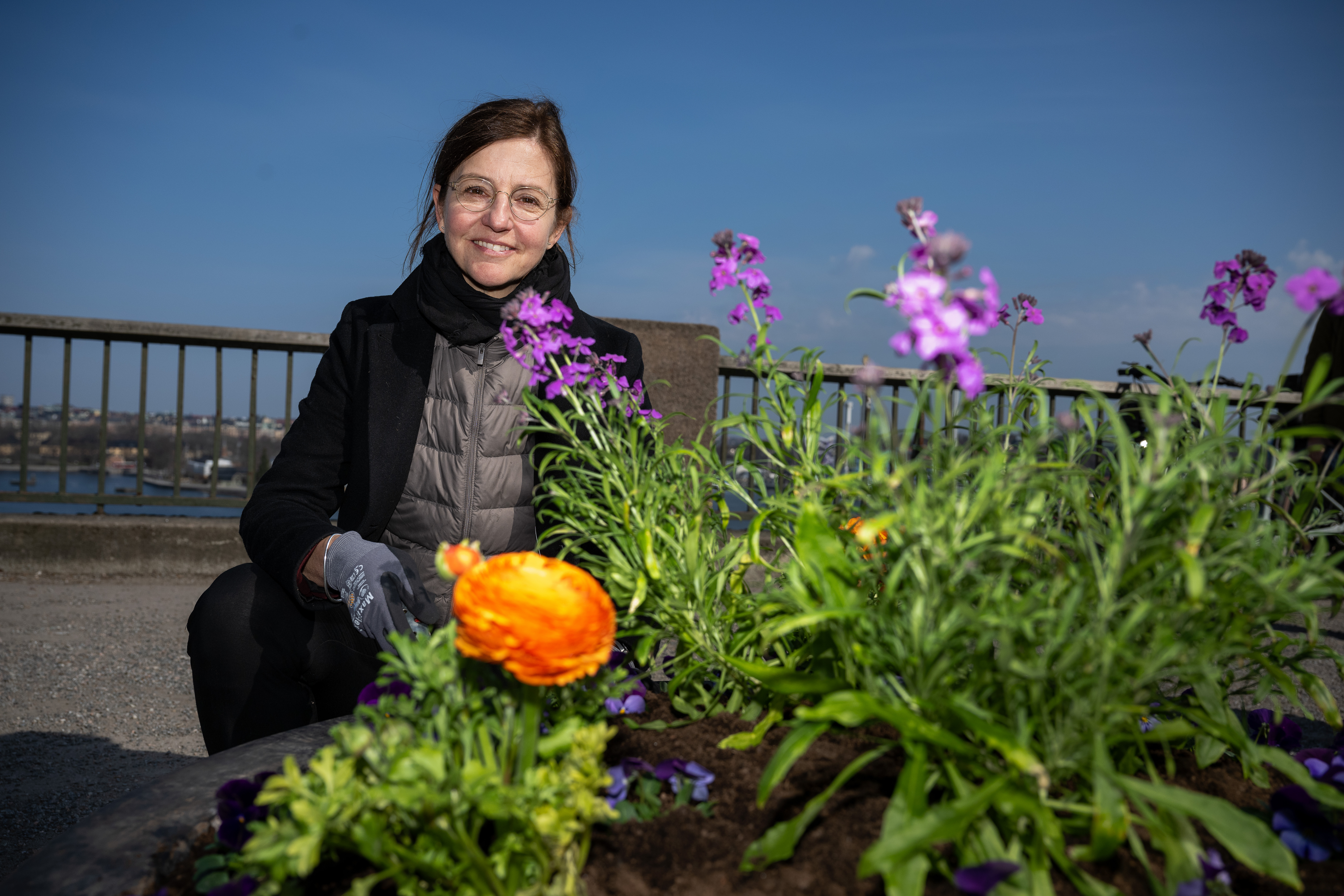 Årets blomsterprogram invigdes av Anna Johansson som är projektledare för blomsterprogrammet, trafikdirektör Gunilla Glantz, stadsträdgårdsmästare Elisabet Elfström och trafikborgarrådet Lars Strömgren.Tillsammans planterade de lila penséer och gyllenlack och orange ranunkler.