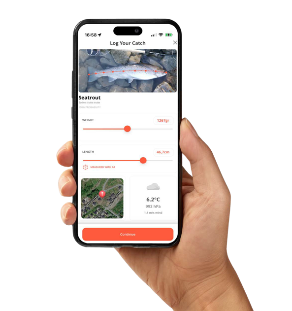 - Vi har ansökt om patent för ett registreringsverktyg där framför allt AR-tekniken (augmented reality) är banbrytande. Genom att ta en bild av fisken beräknar vi art (AI), längd och vikt (AR), fångstplats (satellit/GPS) och samlar in andra öppna data som väder. Det innebär att du i framtiden inte kommer att behöva hålla till godo med fiskhistorier, utan istället kan slå till bordet med faktiska mätningar av sommarens fångst", säger han.