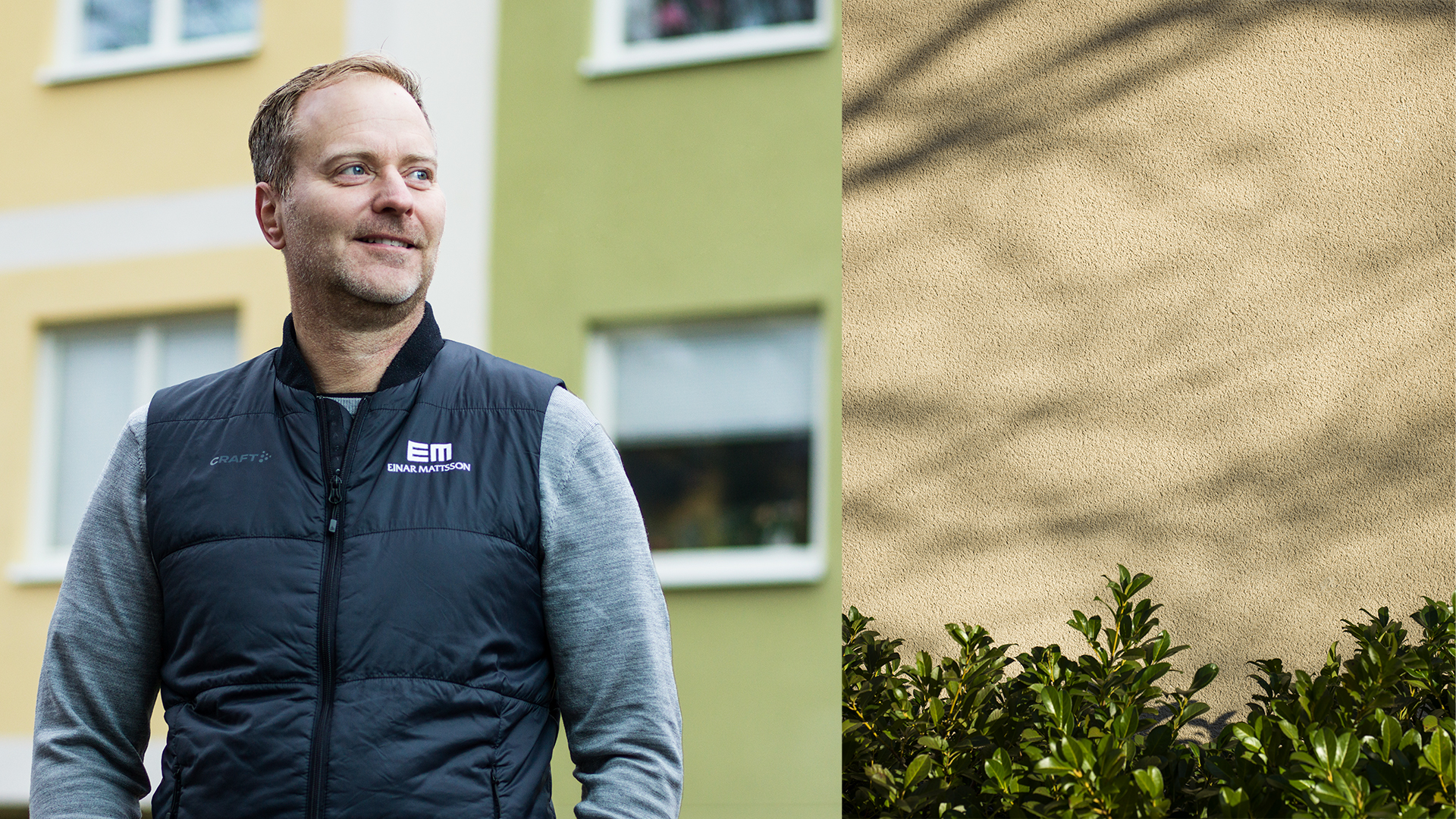– Puts är ett väldigt hållbart material, fasaden får lång livslängd om jobbet är bra gjort. Dessutom kan puts andas så att fukt kan vandra in eller ut. Att putsade hus ofta är väldigt vackra är också en styrka förstås. En stor del av husen som Einar Mattsson äger och förvaltar har spritputsade eller rivputsade fasader.