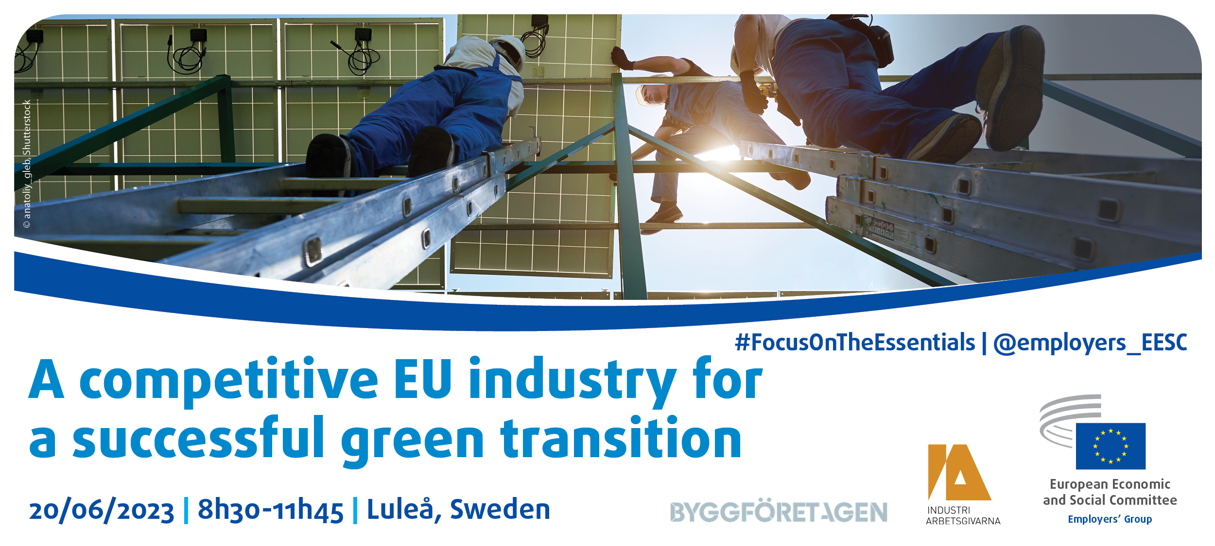 On 20 June 8.30-11.45 the seminar A Competitive EU industry for a successful green transition will take place at Vetenskapens Hus, Storgatan 53, Luleå. https://www.eesc.europa.eu/en/agenda/our-events/events/competitive-eu-industry-successful-green-transition