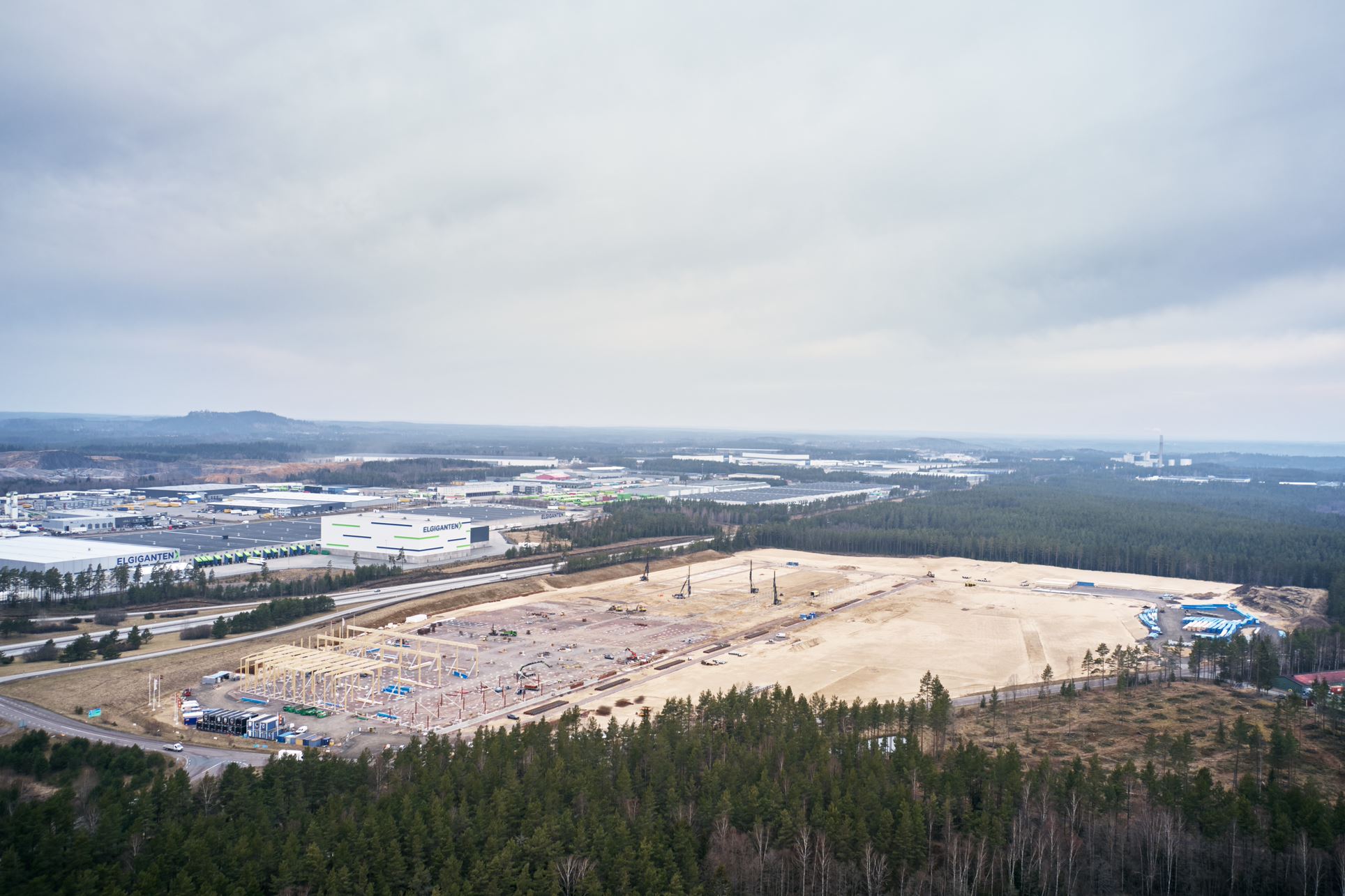 För att kunna möta en ökad tillväxt behöver Elgiganten ett nytt, fristående lager i Jönköping. Den bärande konstruktionen hos den totalt 86 000 kvadratmeter stora byggnaden består av limträ från Moelven. Totalt omfattar trästommen över 500 sadelbalkar som är 24 meter långa och nästan 2 meter höga. Byggnationen av det som kommer att bli Nordens största lager- och logistikanläggning i trä inleddes hösten 2022 med beräknad inflyttning våren 2024.