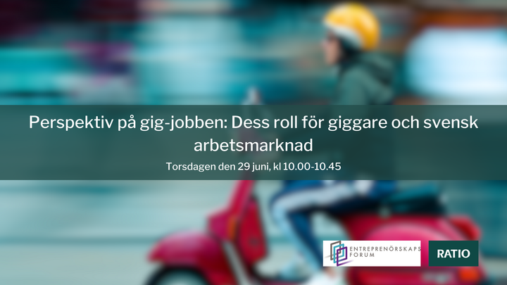 Välkommen till ett seminarium arrangerat av de två forskningsinstituten Entreprenörskapsforum och Ratio. Under detta seminarium presenteras studier av sociologen Linda Weidenstedt som bland annat intervjuat gig-arbetare och av ekonomen Joakim Wernberg som studerar digitalisering och teknikutveckling.