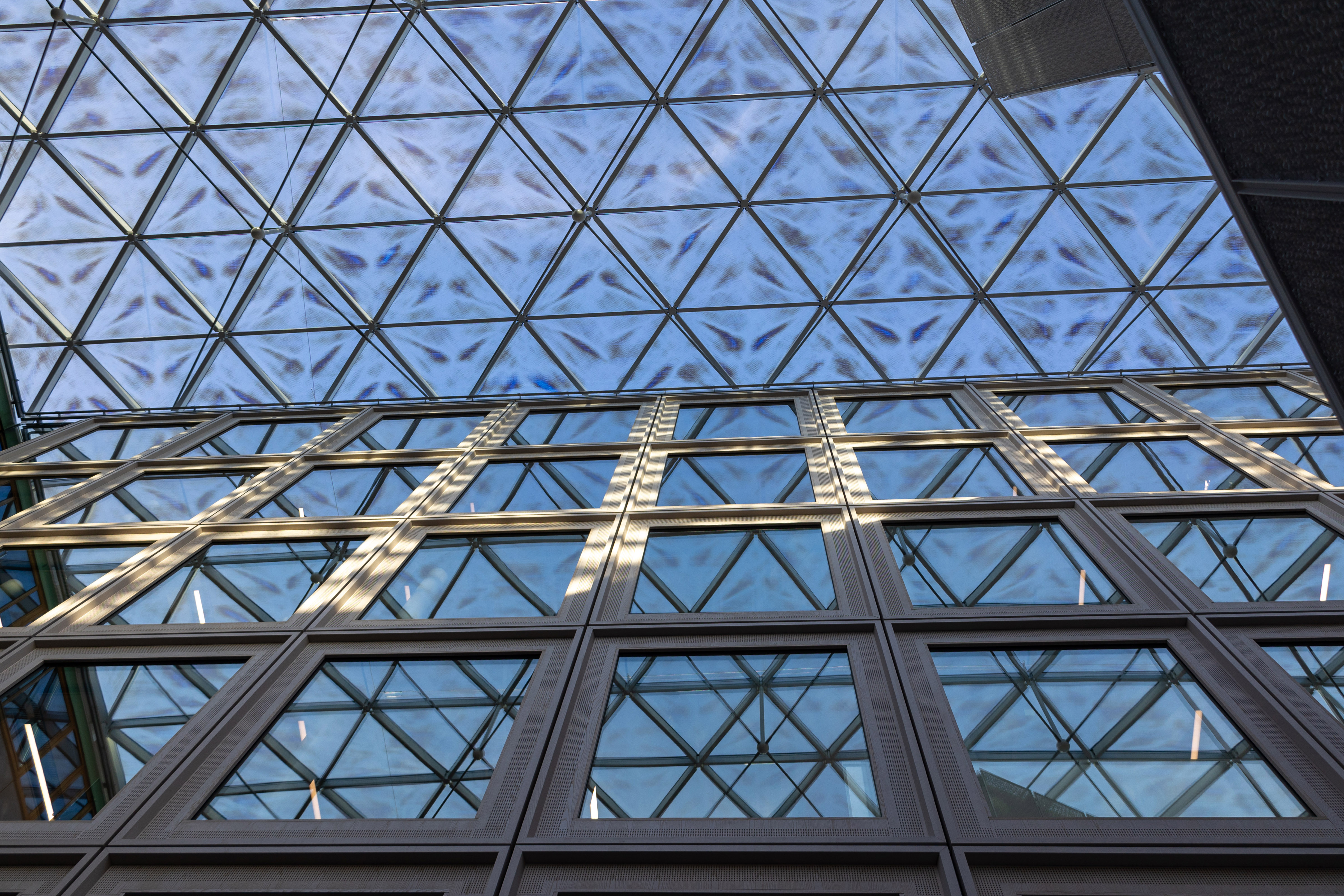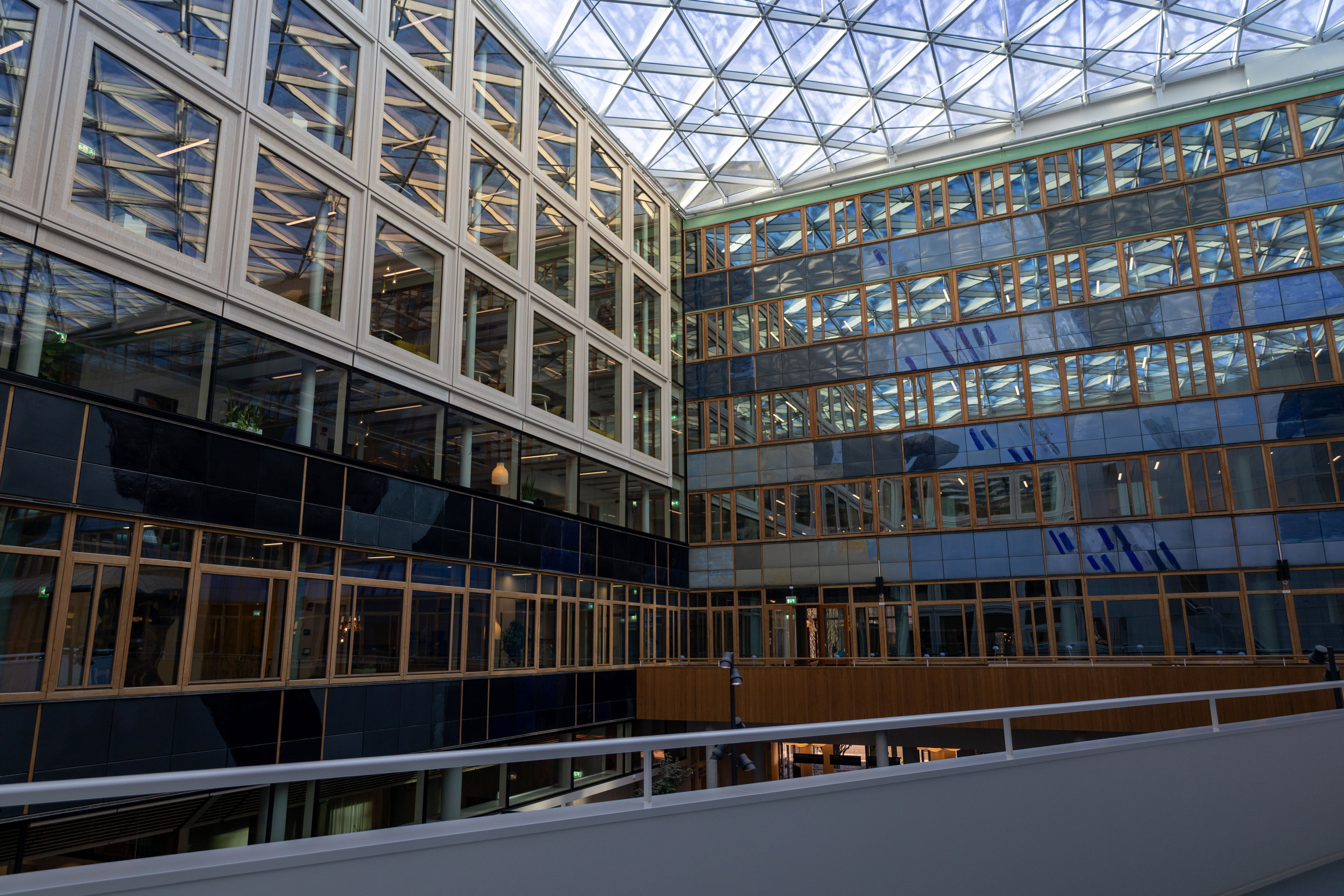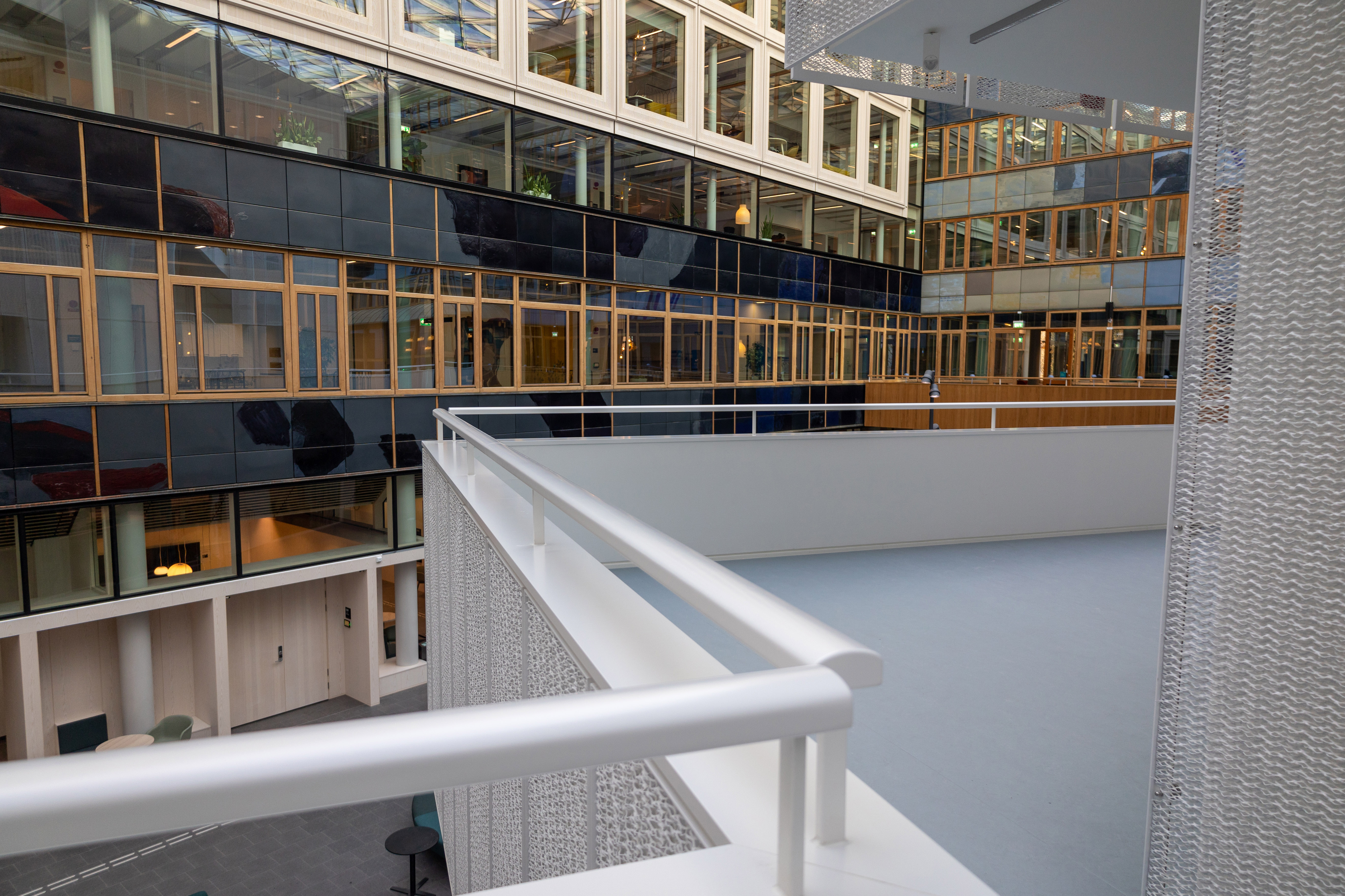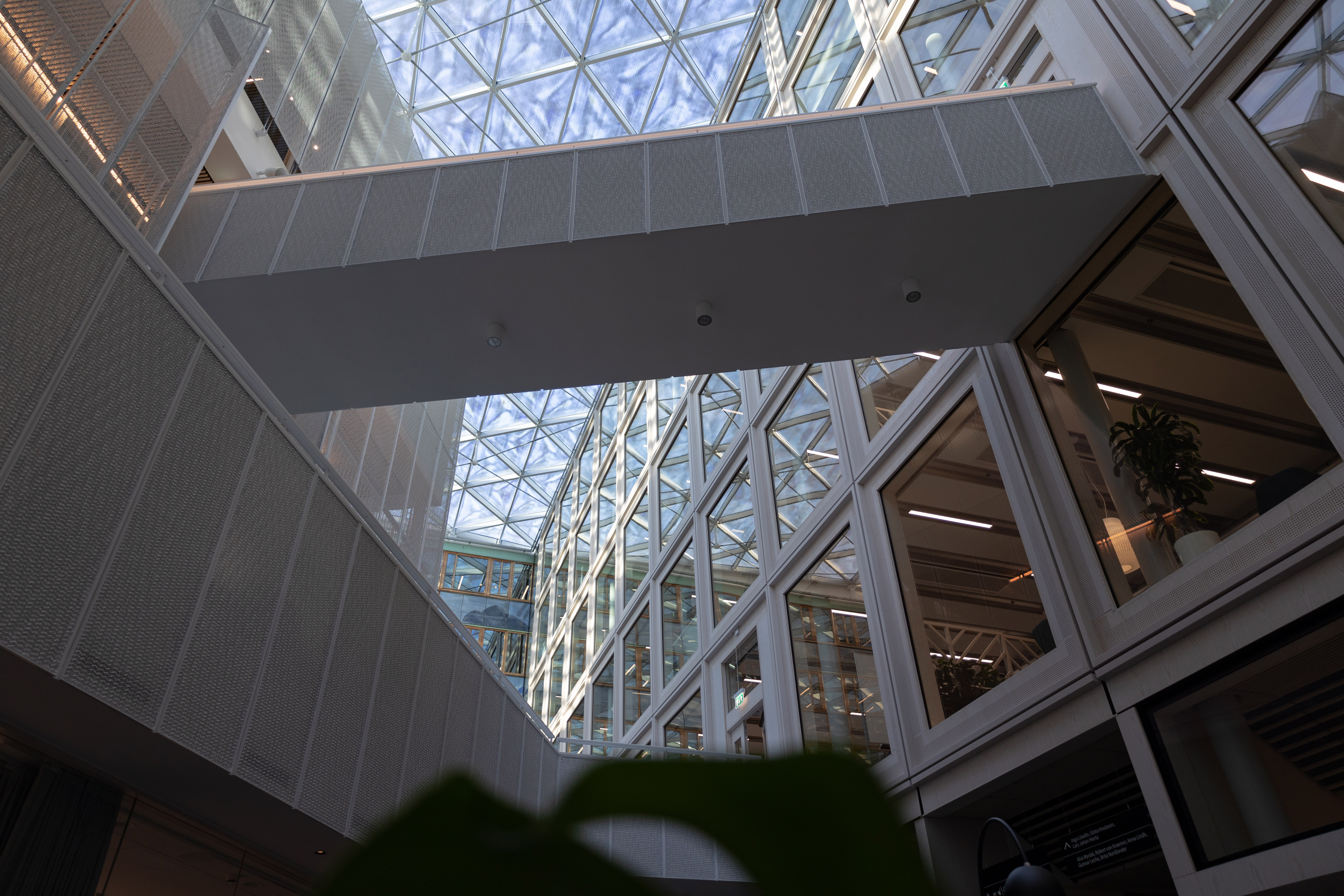 Atriet är ett nytt offentligt rum för alla Uppsalabor, där glastaket skapar ett tempererat rum med dämpat ljud och vackert ljusspel. I en vit, lätt volym uppglasad mot det öppna atriet samlas kommunens förtroendevalda.