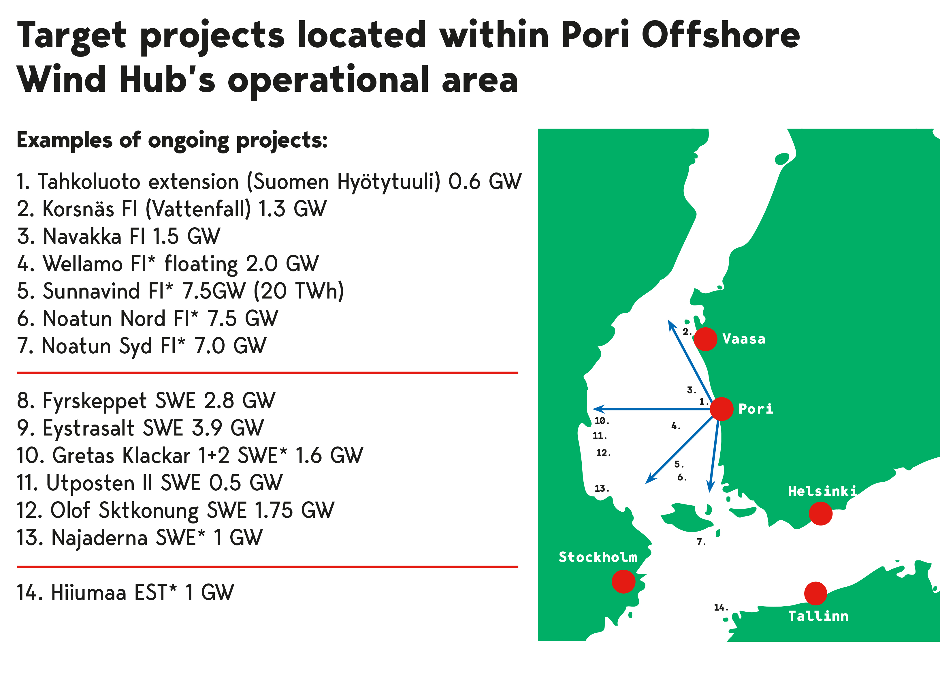 Bottenviksområdet är internationellt sett ett av de mest fördelaktiga områdena för konstruktion av havsbaserade vindkraftverk: Inom en radie av 400 kilometer från Björneborg har totalt 15 större vindkraftsprojekt annonserats i Finland och Sverige. Tahkoluoto är redan hem för världens första vindpark för isbelagda havsområden, som Suomen Hyötytuuli utvidgar betydligt. Samtidigt bygger Enersense, ett börsnoterat företag, redan tekniskt krävande fundament för havsbaserade vindkraftverk i Mäntyluoto hamnområde i Port of Pori. Dessutom har Suomen Hyötytuuli och Port of Pori just enats om att bygga en lastningskaj för grus vid Tahkoluoto hamn i Port of Pori för att betjäna konstruktionen av vindkraftverksfundament.
