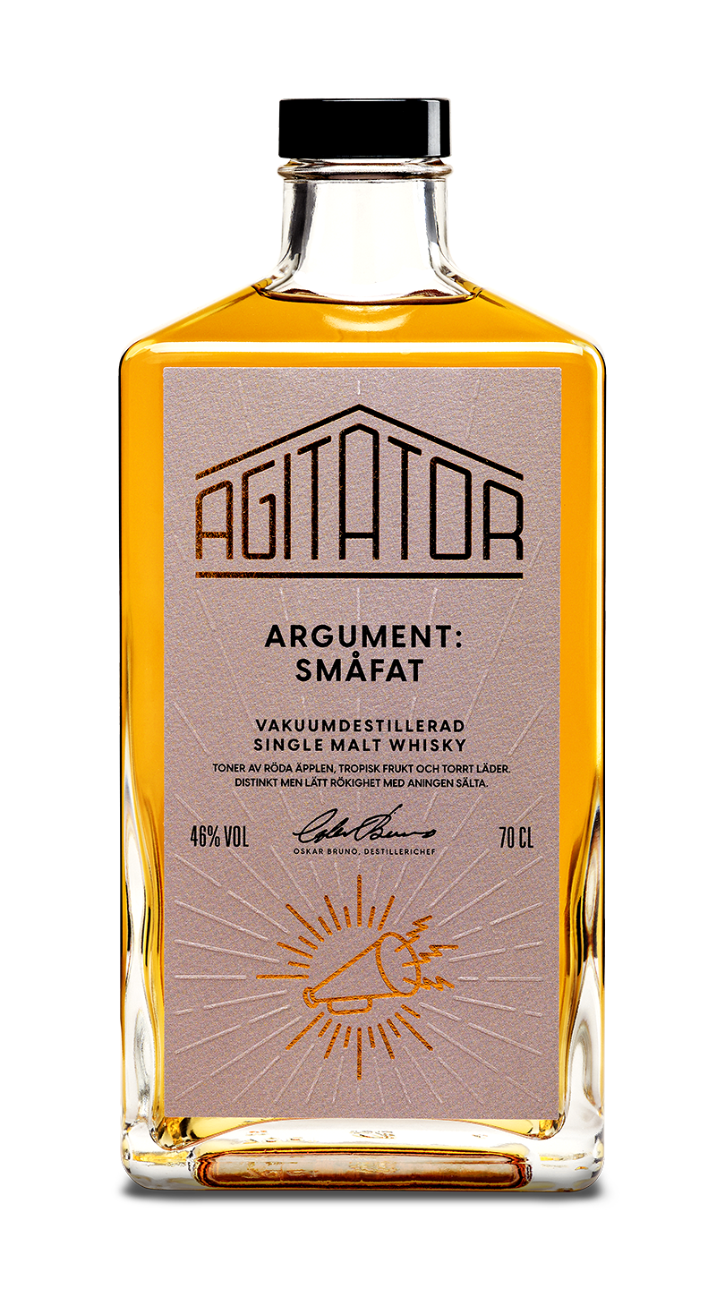 Med start 25:e mars hamnar 6000 flaskor av Agitator Argument Småfat 46% på hyllan i Systembolagsbutiker över hela landet. Varunumret är 40415 och priset är 599 kr för en helflaska på 70 cl.