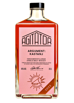 Agitator Argument Kastanj har en styrka på 46% och får en tillfällig lansering på Systembolaget med artikelnummer 40414. 7.200 flaskor hamnar på hyllorna i 220 butiker runt om i landet 4 november. Priset är 599 kr för 70 cl.