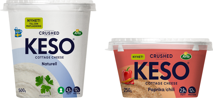 Nu lanseras KESO® Cottage Cheese Crushed – en helt ny variant av KESO® som med sin finkorniga och krämiga konsistens passar perfekt i matlagning. Produkten kommer i smakerna Naturell och Paprika & chili. Finns i butik från vecka 36.