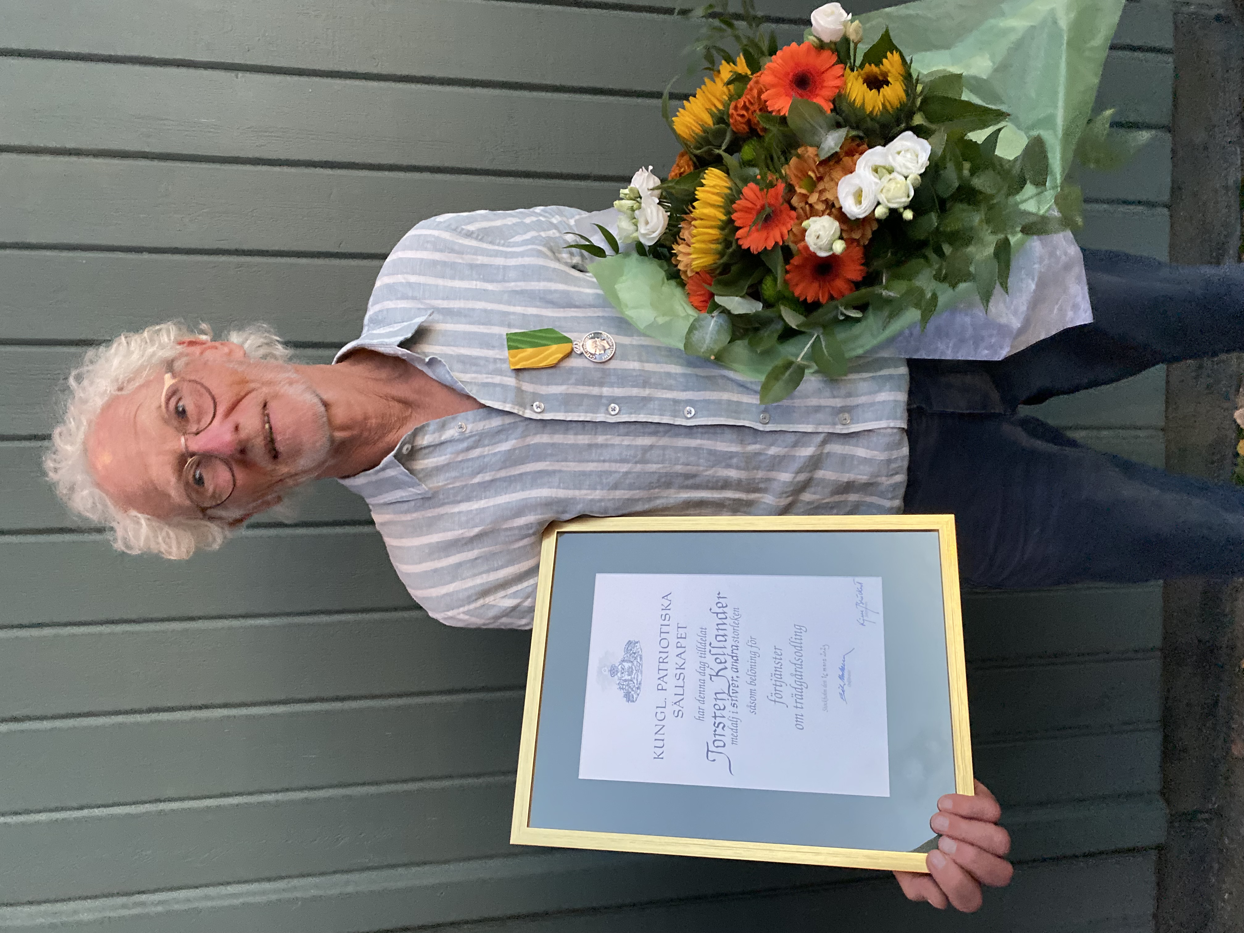 Riksförbundet Svensk Trädgård delar ut kungliga trädgårdsmedaljer Kungliga Patriotiska sällskapets medalj ”För odlingsflit och för förtjänster om trädgårdsodling eller biodling” delades ut av Riksförbundet Svensk Trädgård i Skellefteå lördag den 10 augusti. Medaljen går till personer som bidragit till att främja trädgårdskonst, odling eller forskning om trädgård eller biodling. Medaljen är i silver, andra storleken.