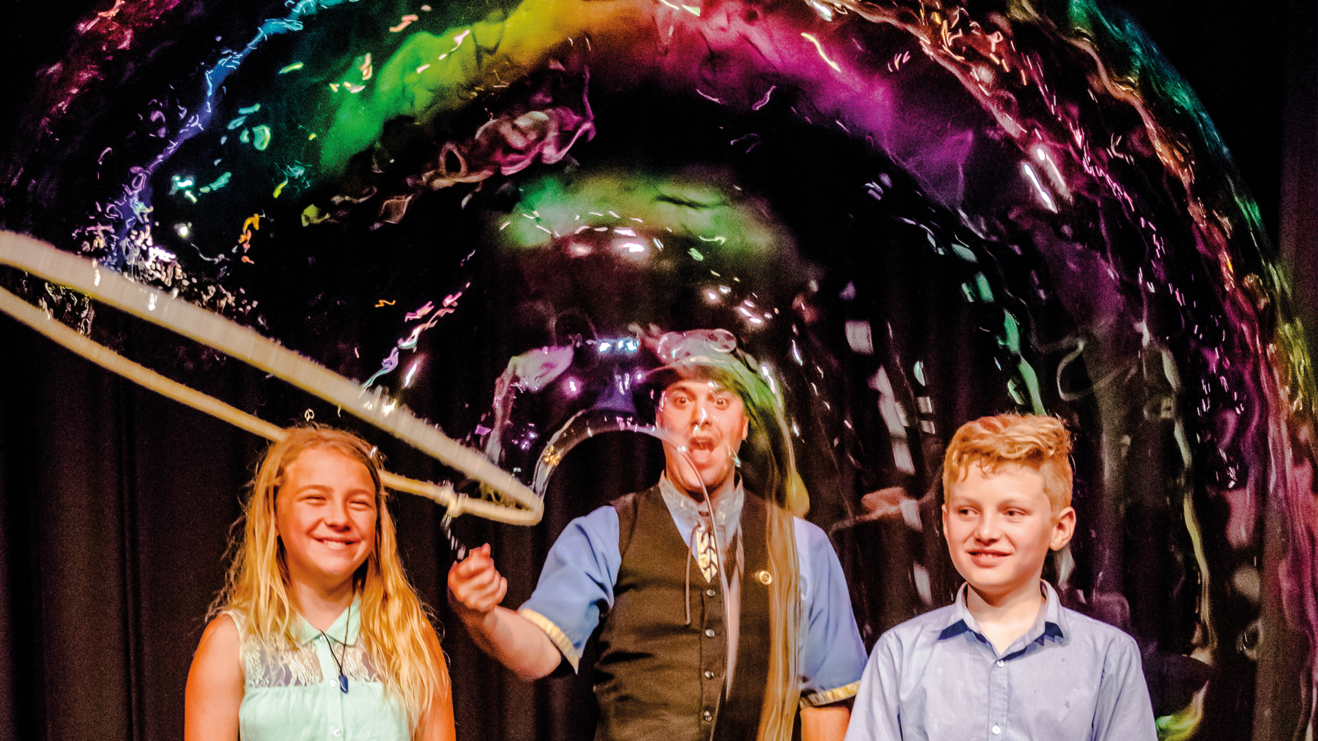 För alla som gillar såpbubblor finns här chansen att träffa Guinness rekordinnehaven Mr. Bubbles och se hans otroliga såpbubblor i alla former och storlekar. Från små bubblor till jättebubblor och från rökbubblor till skum på huvudet – det blir en interaktiv och internationell prisbelönt bubbelshow.