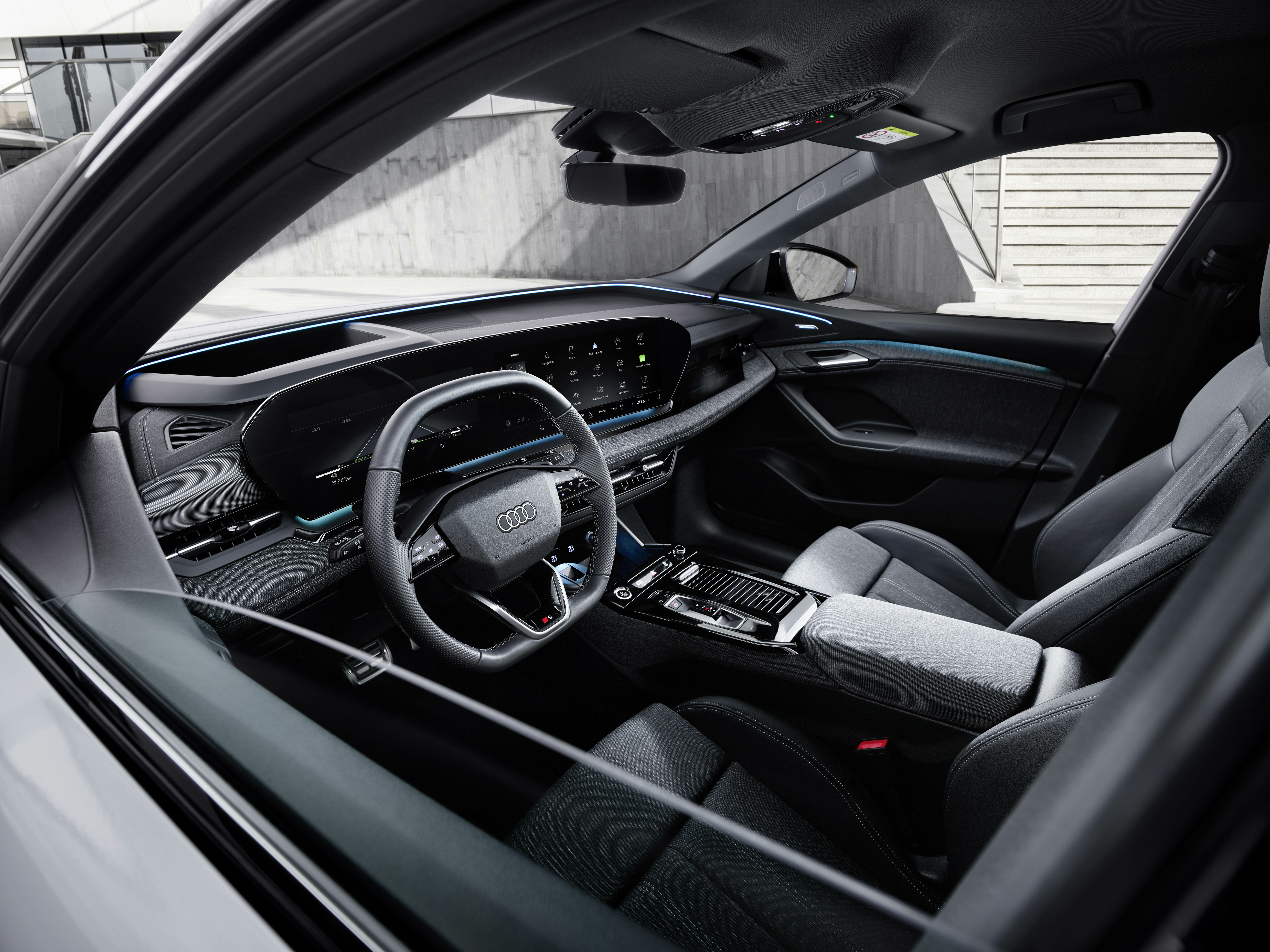 Ovanför den så kallade ”softwrappen” domineras interiören av den ”digitala scenen“ med Audi MMI panoramadisplay och MMI passagerardisplay. De tydligt grupperade displayerna är perfekt integrerade i designkonceptet och ger kupén en rymlig och luftig känsla. Den nätta, fristående Audi MMI panoramadisplayen har en välvd design och OLED-teknik och består av den 11,9 tum stora Audi virtual cockpit och den 14,5 tum stora MMI touch-skärmen. Förarmiljön är utformad som en båge och displayen är med sin böjda form riktad mot föraren och påminner om den Audi-typiska Single-framen. En speciell miljöbelysning får den välvda displayen att sväva när det är mörkt.