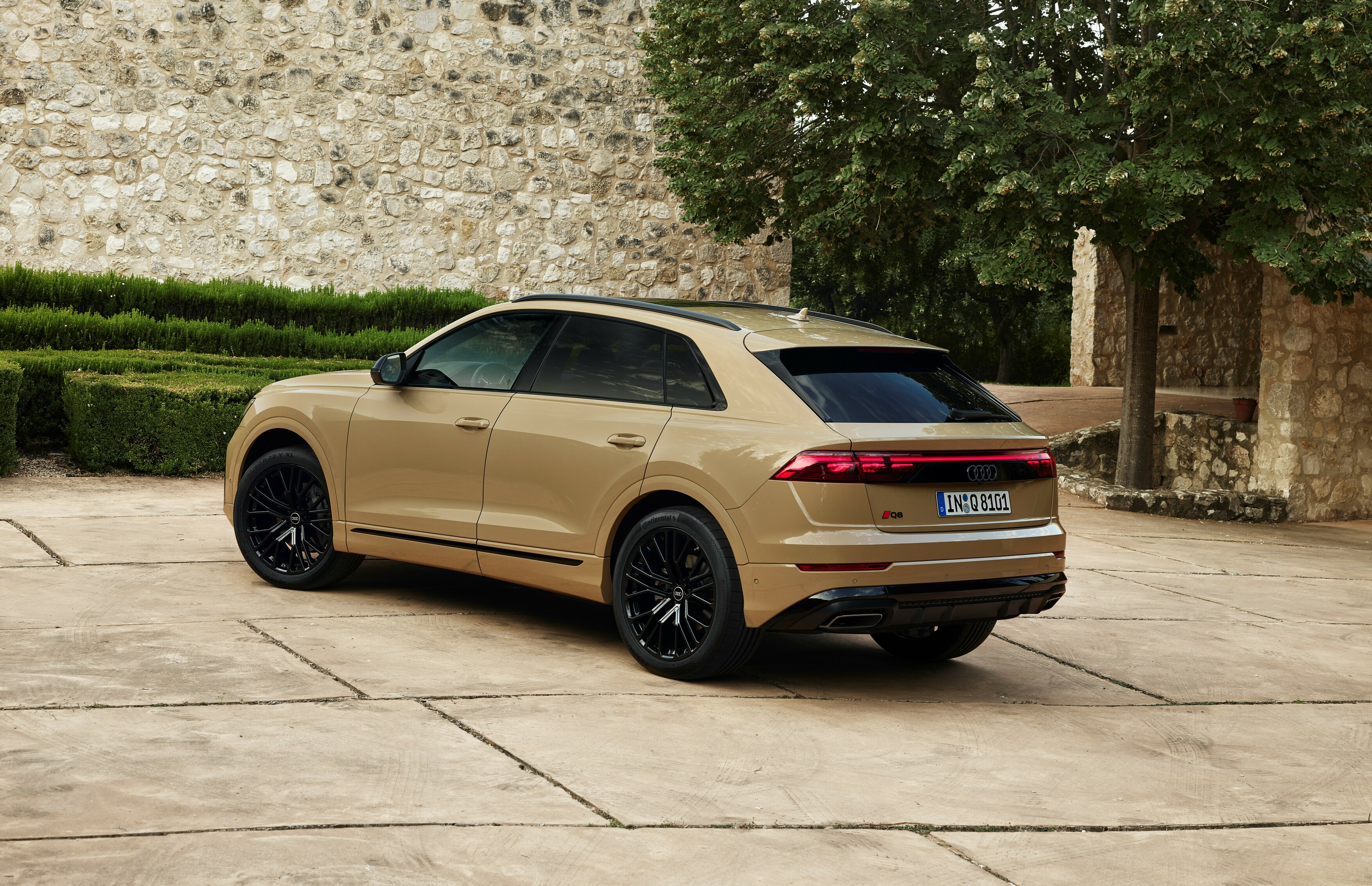 De innovativa strålkastarna med HD Matrix LED-teknik och laserljus liksom de digitala dagsljusen ger Q8 ett ännu mer självsäkert uttryck. I kombination med de digitala OLED-bakljusen, som för första gången finns i Q8, blir premiumkaraktären ännu tydligare. Över bakpartiet löper även en LED-ljuslist och svarta, högblanka paneler med integrerade Audi-ringar som ansluter till OLED-bakljusen.