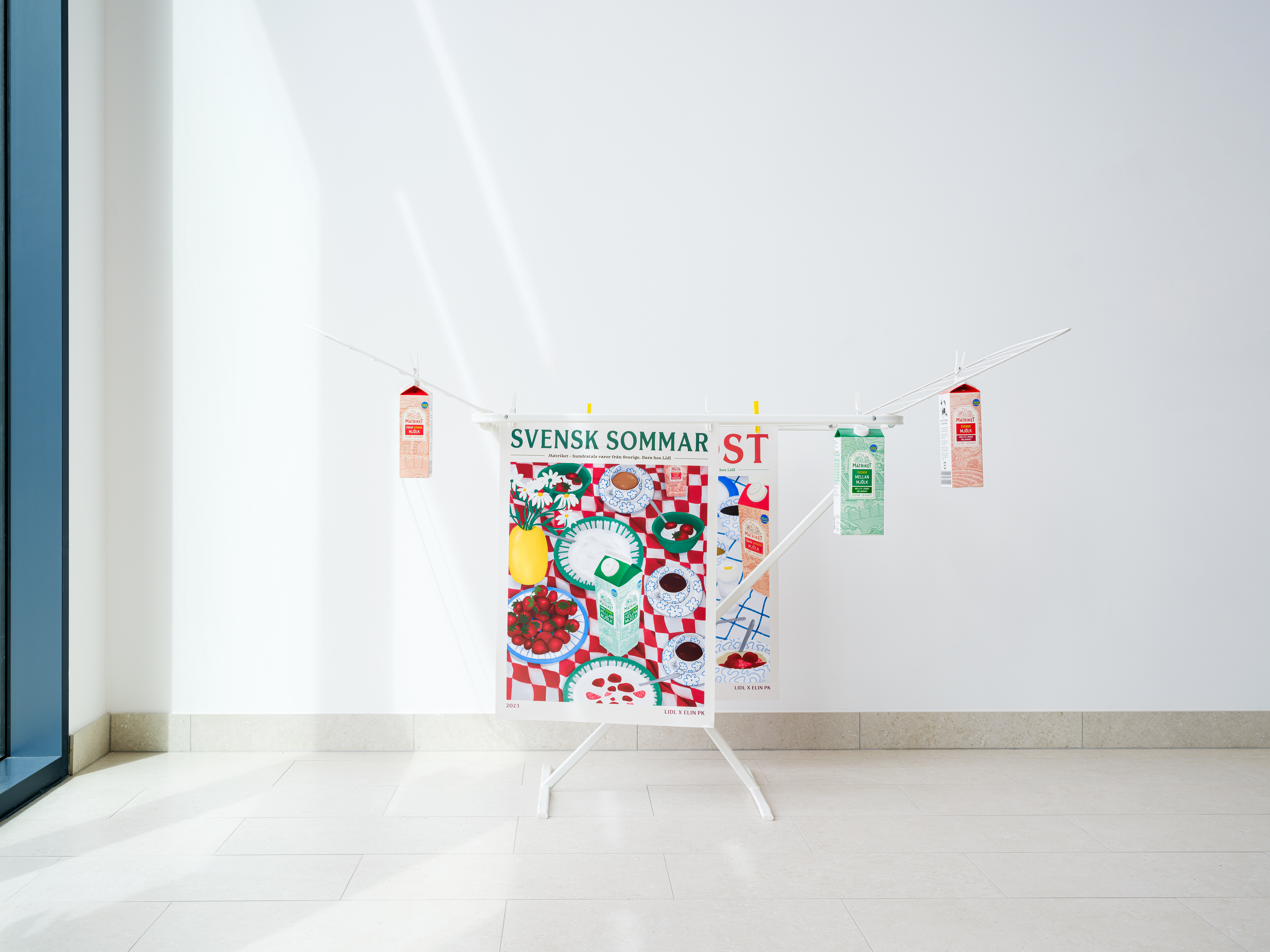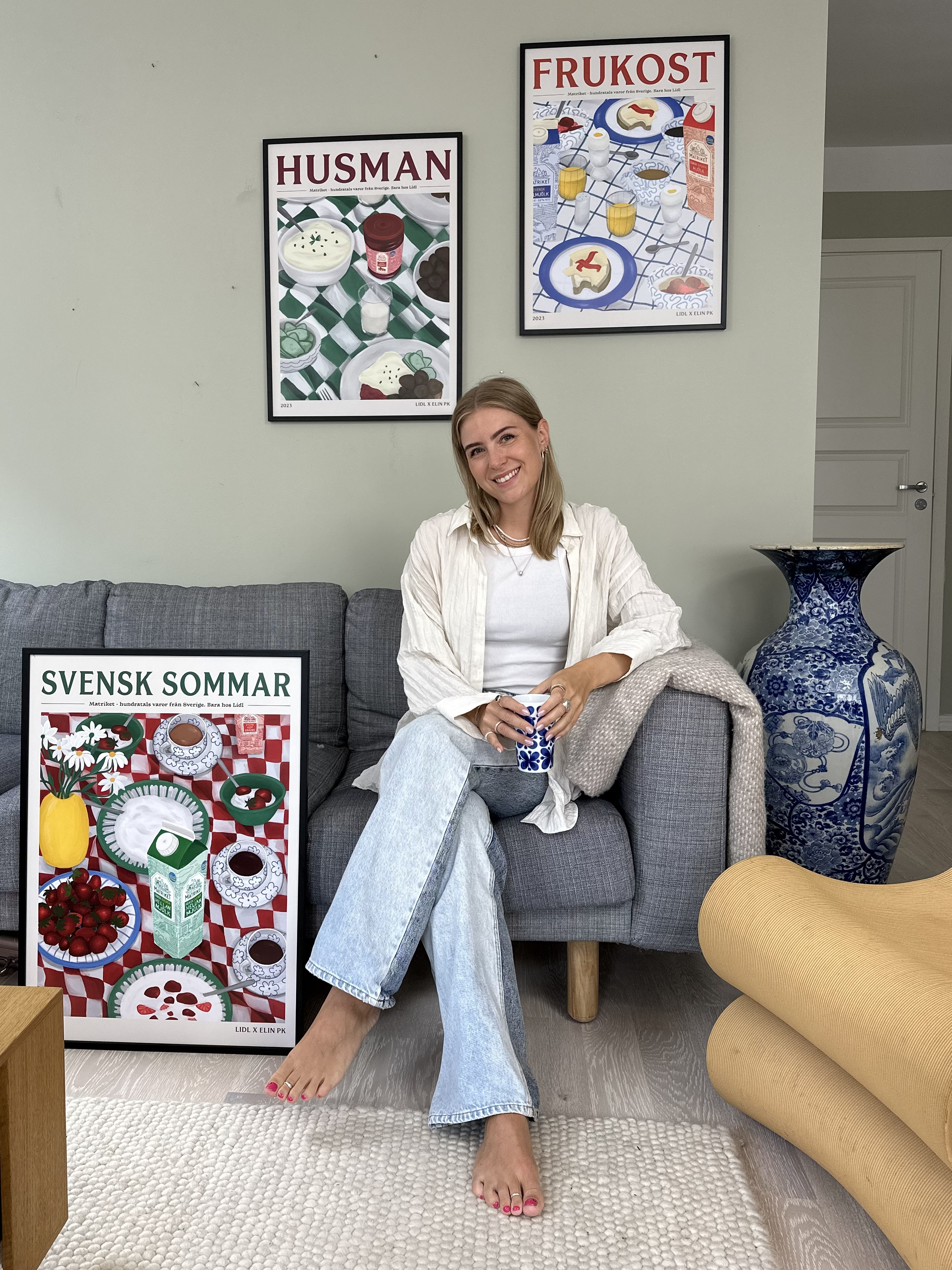 - Våra produkter från Matriket är redan ett naturligt inslag hos de svenska hushållen, men nu tar vi det ett steg längre genom att erbjuda våra kunder konst att hänga på väggarna. Det har varit otroligt att få arbeta med Emilia och Elin. Deras respektive stilar är unika och personliga samtidigt som de gifter sig bra med Matriket, säger Jenny Canborn Eenfeldt, PR-specialist på Lidl Sverige.