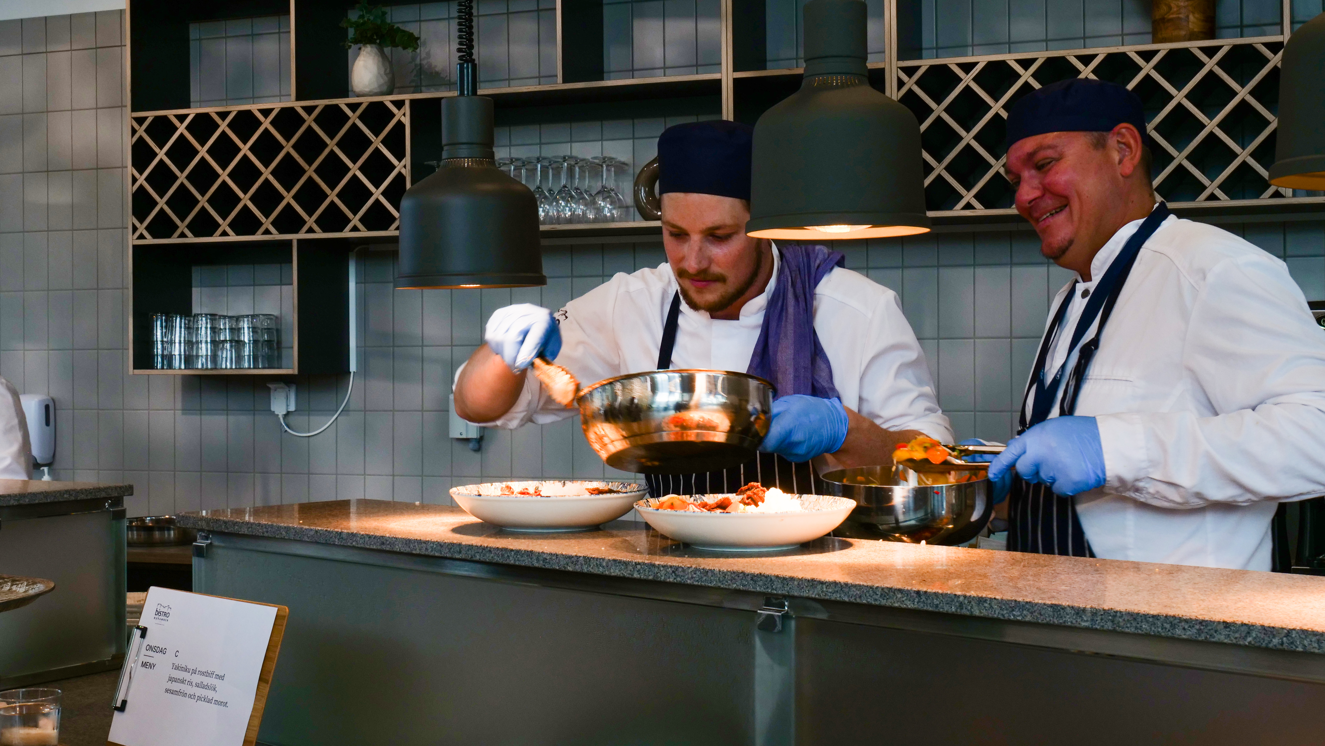 –Vi är så glada att äntligen kunna hälsa gäster välkomna. I restaurangen serveras lunch under vardagar och vi erbjuder även catering och event. Allt genomsyras av ett starkt miljötänk, vi har ambitiösa mål; att minimera matsvinnet och nyttja alla delar i råvarorna, säger Lisa Hagman, restaurangchef för Bistro Nyhamnen.
