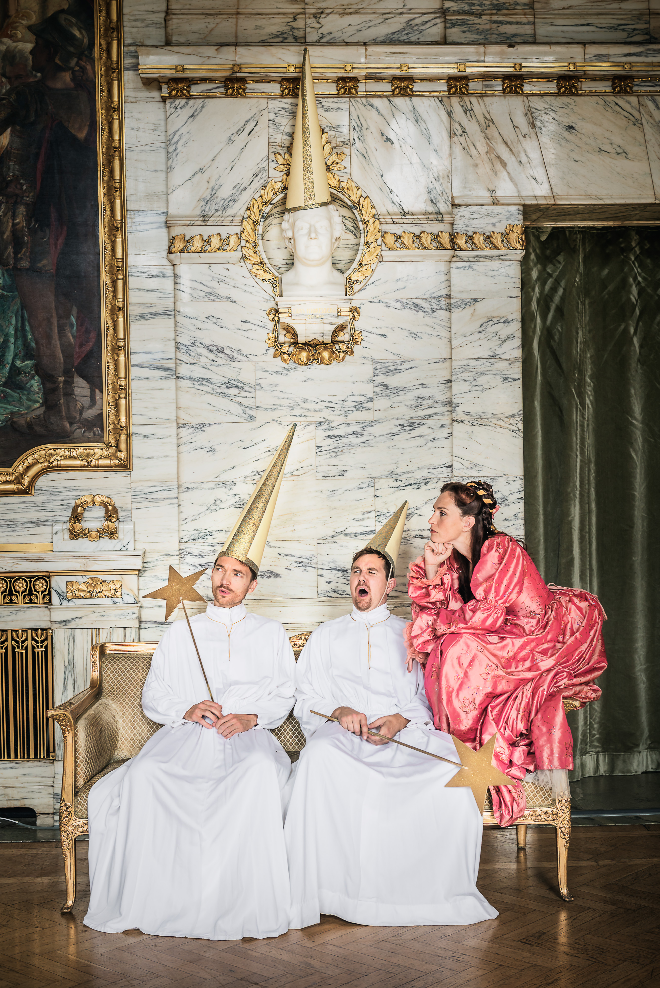 Under mellandagarna kommer barnen återigen få gå bakom ridåerna till teaterns värld tillsammans med dragdrottningarna. Deras teaterguidning börjar och slutar i Lejonkulan där en jakt på självaste Thalia tar vägen förbi Stora scenens salong och Marmorfoajén där barnen får skriva en egen pjäs.