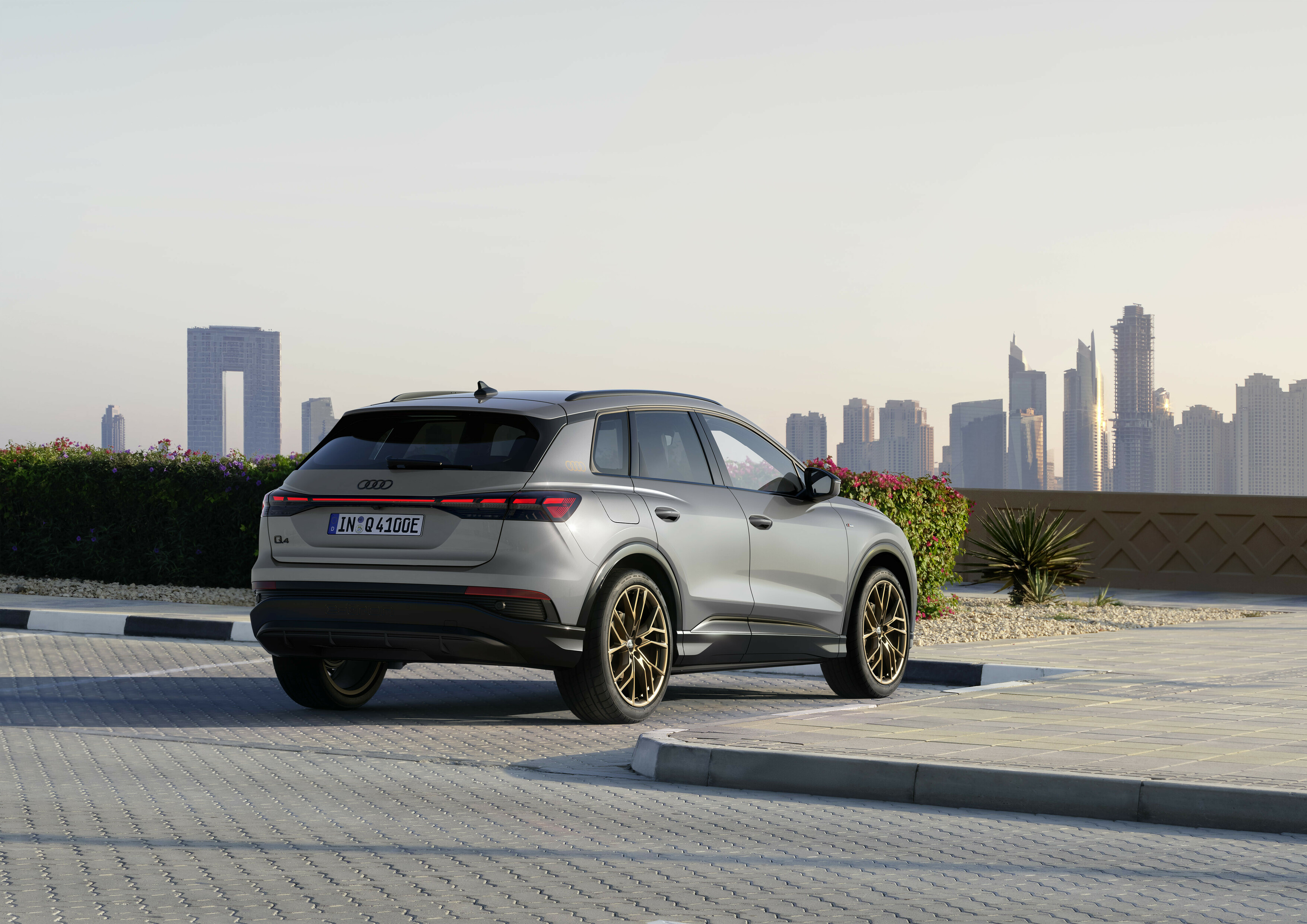 Med nya edition S line utökar Audi det omfattande utbudet av tillvalsmöjligheter. Specialversionen känns igen på sportiga accenter i form av lackering i kiselgrått, glaciärvit metallic eller mytsvart metallic, där hjulhus- och nedre dörrpaneler är lackerade i kontrasterande mytsvart metallic. 21-tumsfälgar i matt bronsfärgad 5-W-ekers stjärndesign, mörktonade Matrix LED-strålkastare och LED-baklyktor samt bronsfärgade Audi-ringarna på D-stolpen bidrar till bilens unika karaktär.