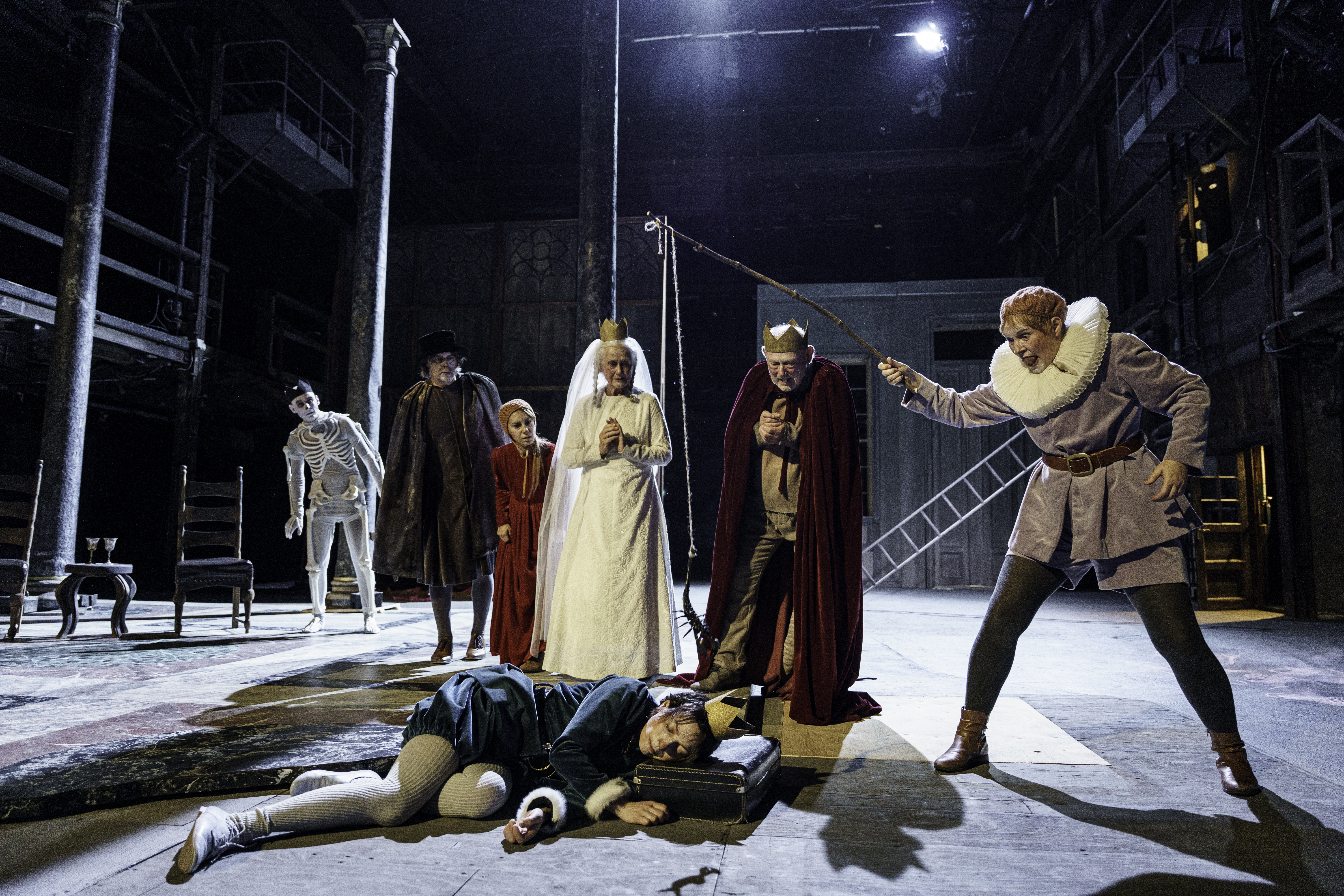 Ensemblen spelar upp en scen ur Titta Hamlet.