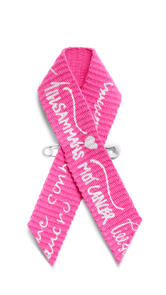 Årets 20 designers har fått skriva orden ”Tillsammans mot cancer” med sin handstil och den som köper Cancerfondens rosa band får ett unikt utsnitt av detta mönster.