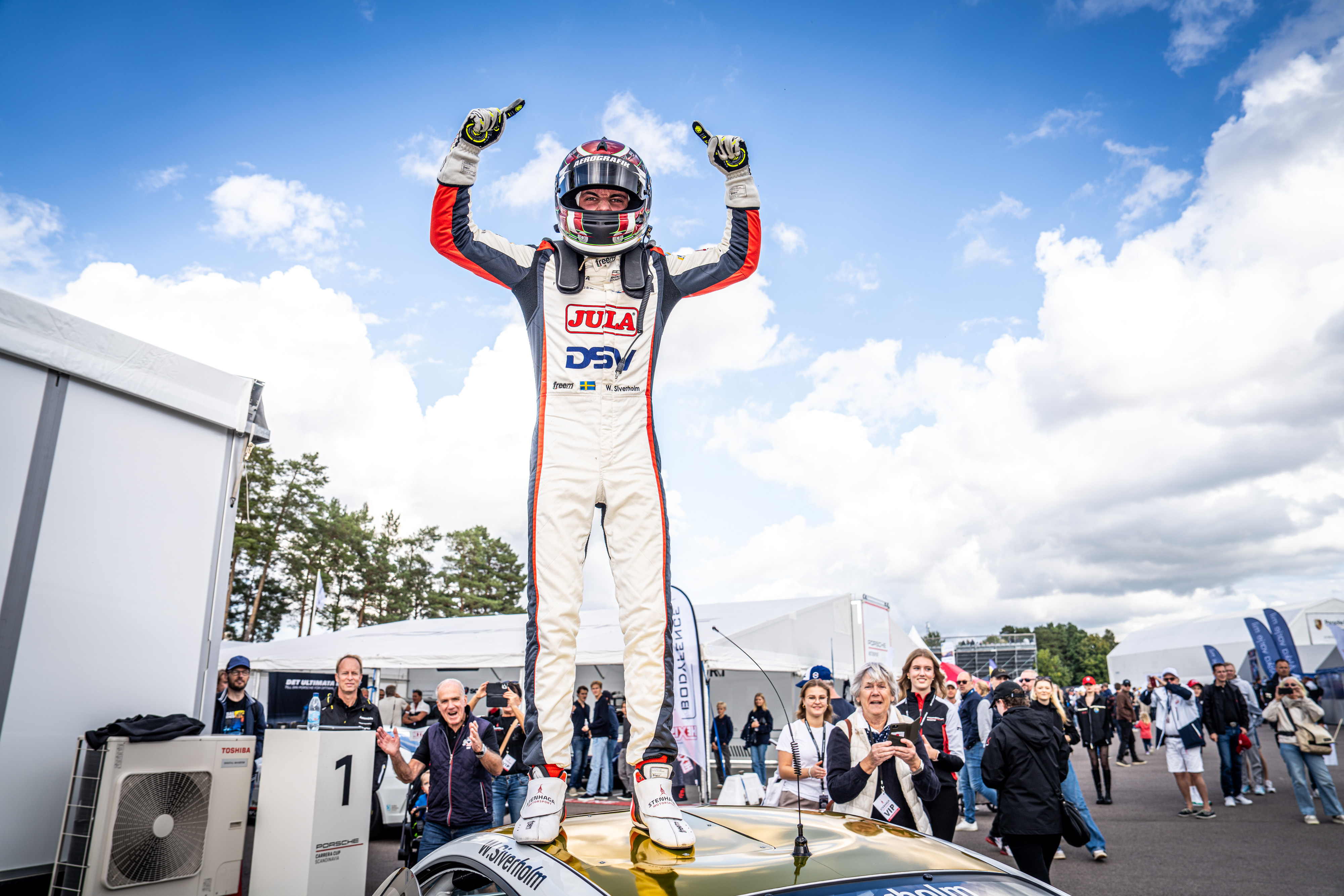 – Vi räknade inte ut oss, men konstaterade att nu är det fokus på allt som gäller, hela tiden, varje pass, varje varv. Och det har vi hållit, bortsett från fadäsen i Karlskoga när Ola körde av i ledning i det första heatet och tappade ner till femte plats, säger Karlsson som figurerat i Porsche Carrera Cup ända sedan starten 2004.
