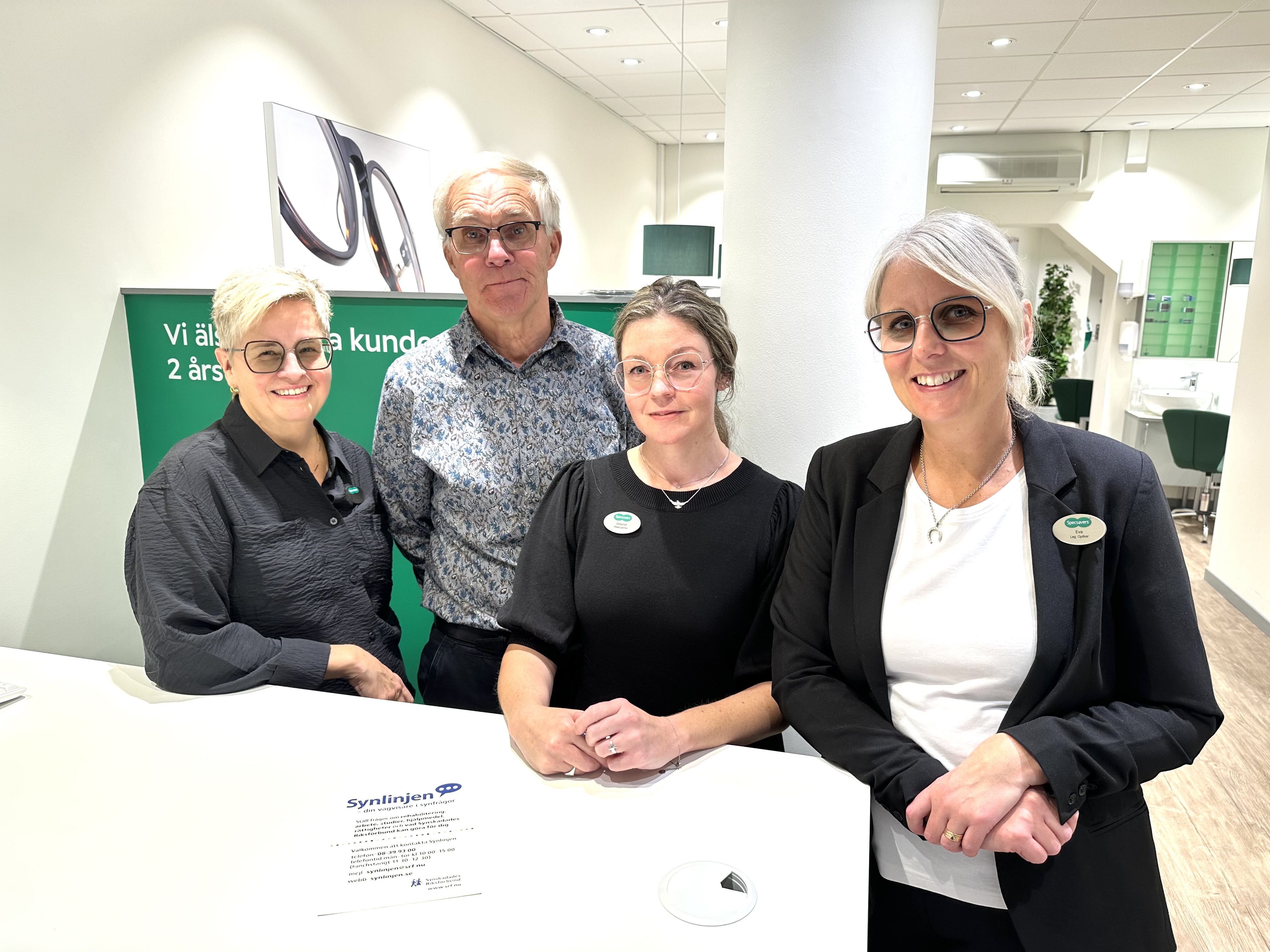 – Vår gröna linje är en påminnelse om att för personer med synnedsättning är vardagen full av stora och små utmaningar. Att läsa på en skärm eller i kontakter med myndigheter är sådana exempel. Där gör Synlinjen ett fantastiskt arbete och med den här aktiviteten vill vi bidra till att öka kännedomen om att den finns och är viktig, säger Eva Lilja, leg. optiker och delägare, Specsavers Skellefteå.