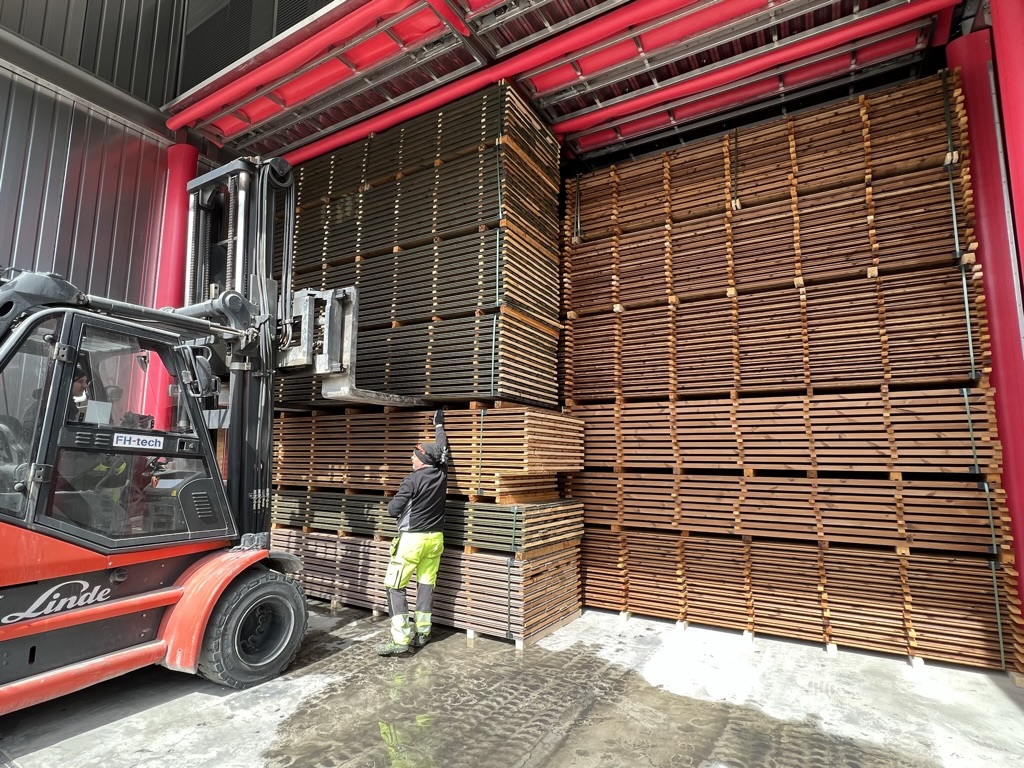 ”Med detta tillskott i torkkapacitet för brandskyddat trä säkerställer Woodsafe en ökning i leveranskapacitet ifrån föregående år på ca 18.000 kubikmeter till 40.000 kubikmeter brandskyddat trä. Förra veckan startades den första torksatsen utan några överraskningar, allt går perfekt från början” säger Stefan Hedqvist Produktionschef på Woodsafe Timber Protection.