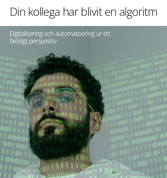 Det kräver en hel del av oss som fackförbund om vi ska påverka utvecklingen i rätt riktning och vara med och forma den arbetsmarknad och den välfärdssektor vi vill se. Denna handbok är ett första steg på vägen. Det är viktigt att professionen deltar när algoritmer och automatiserade processer utformas för att frågor ska ställas, relevant data ska användas. Något som bara är möjligt om de som faktiskt jobbar i välfärden involveras – vilket dessvärre inte alltid är fallet idag.