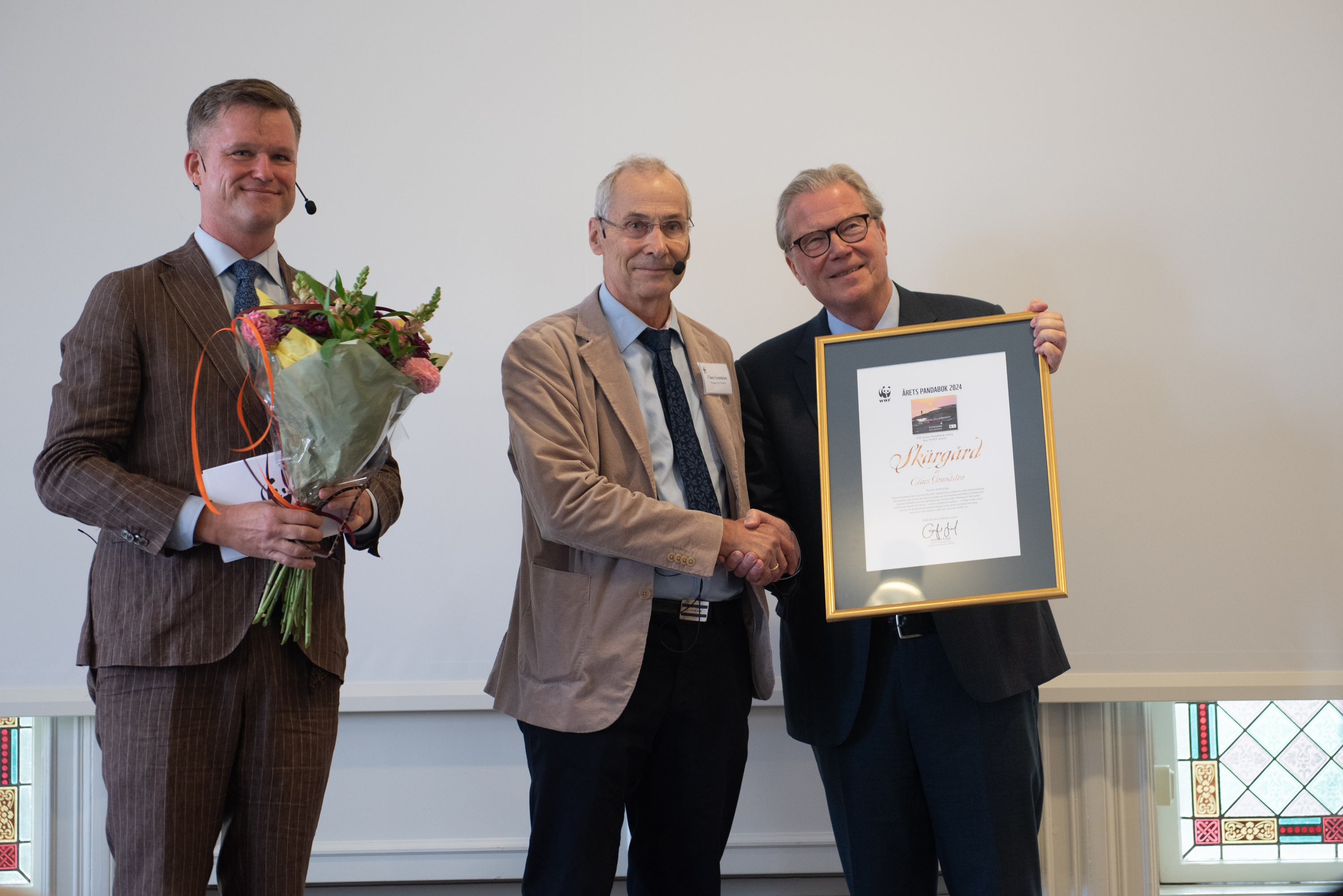 Gustaf Lind, generalsekreterare WWF, Claes Grundsten, vars fotobok Skärgård utsetts till Årets pandabok 2024 och Leif Johansson, ordförande i WWF styrelse.
