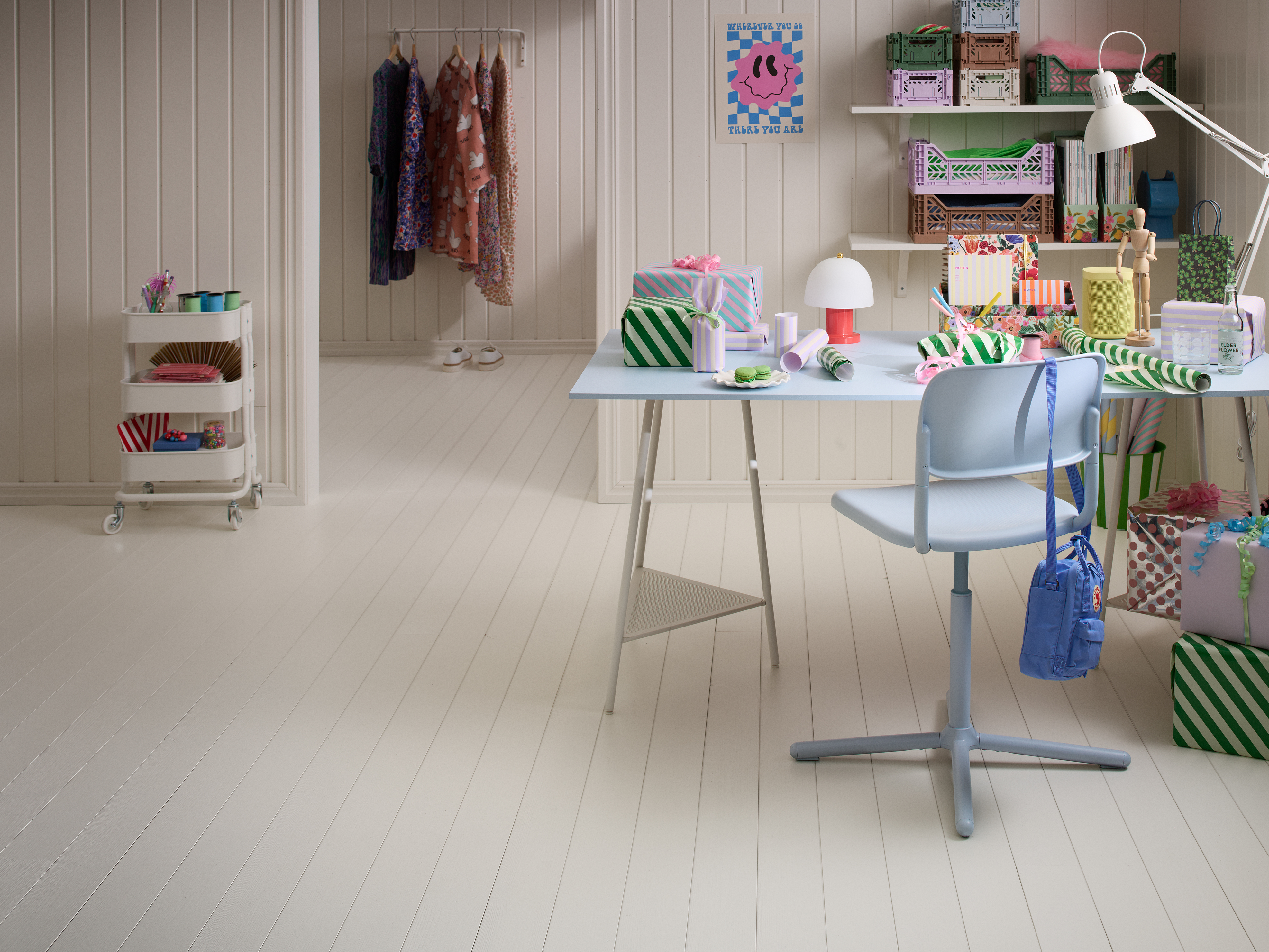 Handmålade trägolv har varit ett inslag i svensk inredningshistoria sedan 1700-talet. Nu lanserar Moelven nya generationen målade trägolv – Leva. Ett färdigmålat furugolv med slitstark yta som motsvarar nutidens högt ställda krav på livslängd och funktionalitet.