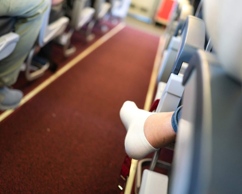 - Att ta av sig skorna under flygturen är fullt accepterat. Men behåll strumporna på! Annars riskerar du att irritera åtminstone tre av fyra svenskar (75 procent). Och när vi ändå är inne på ämnet ”fötter” anser fler än fyra av fem (84 procent) att du bör undvika att lyfta upp dem mot sätet framför dig.
