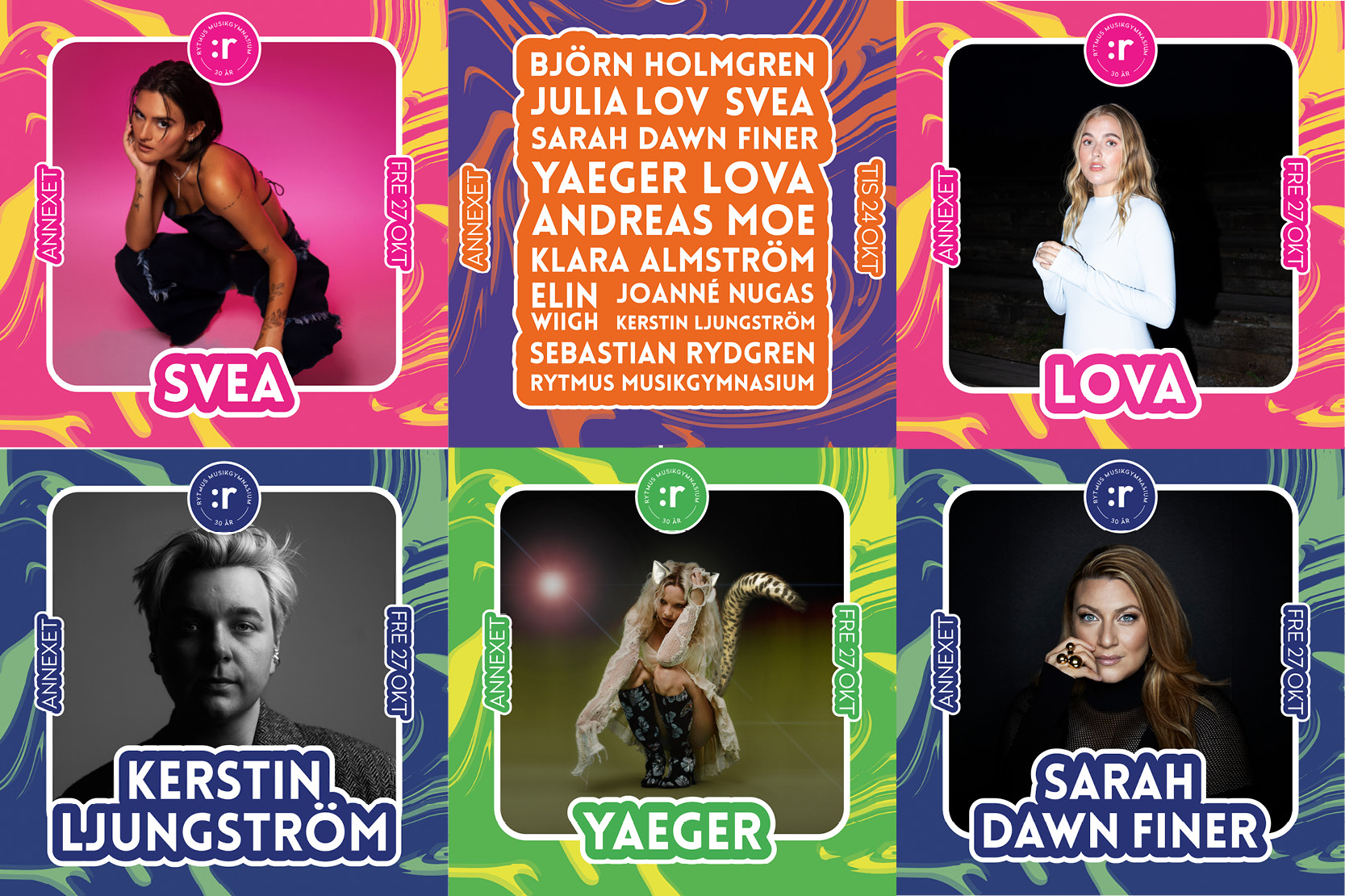 Artister: Kerstin Ljungström, Klara Almström, Sebastian Rydgren, SVEA, Björn Holmgren, Elin Wiigh, Joanné Nugas, Julia Lövholm, Yaeger, LOVA, Sarah Dawn Finer, Andreas Moe, tillsammans med elever på Rytmus Stockholm