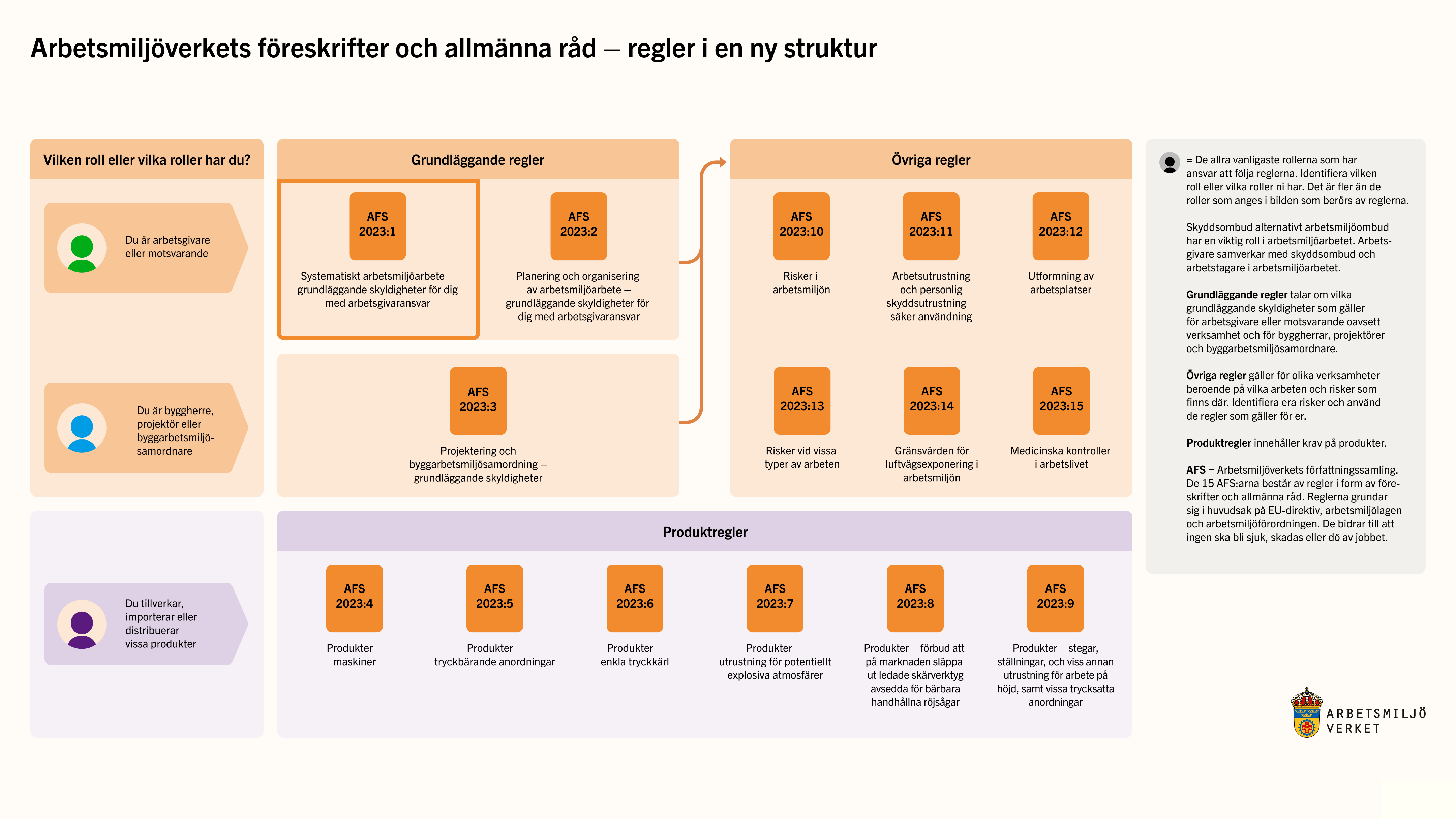 – Regelverket behövde ses över för att få föreskrifterna mer anpassade till dagens och morgondagens arbetsliv. Reglerna blir mer tillgängliga och med ett enklare och enhetligare språk också lättare att förstå. Nytt är också att reglerna nu blir tillgängliga digitalt, säger Håkan Olsson.