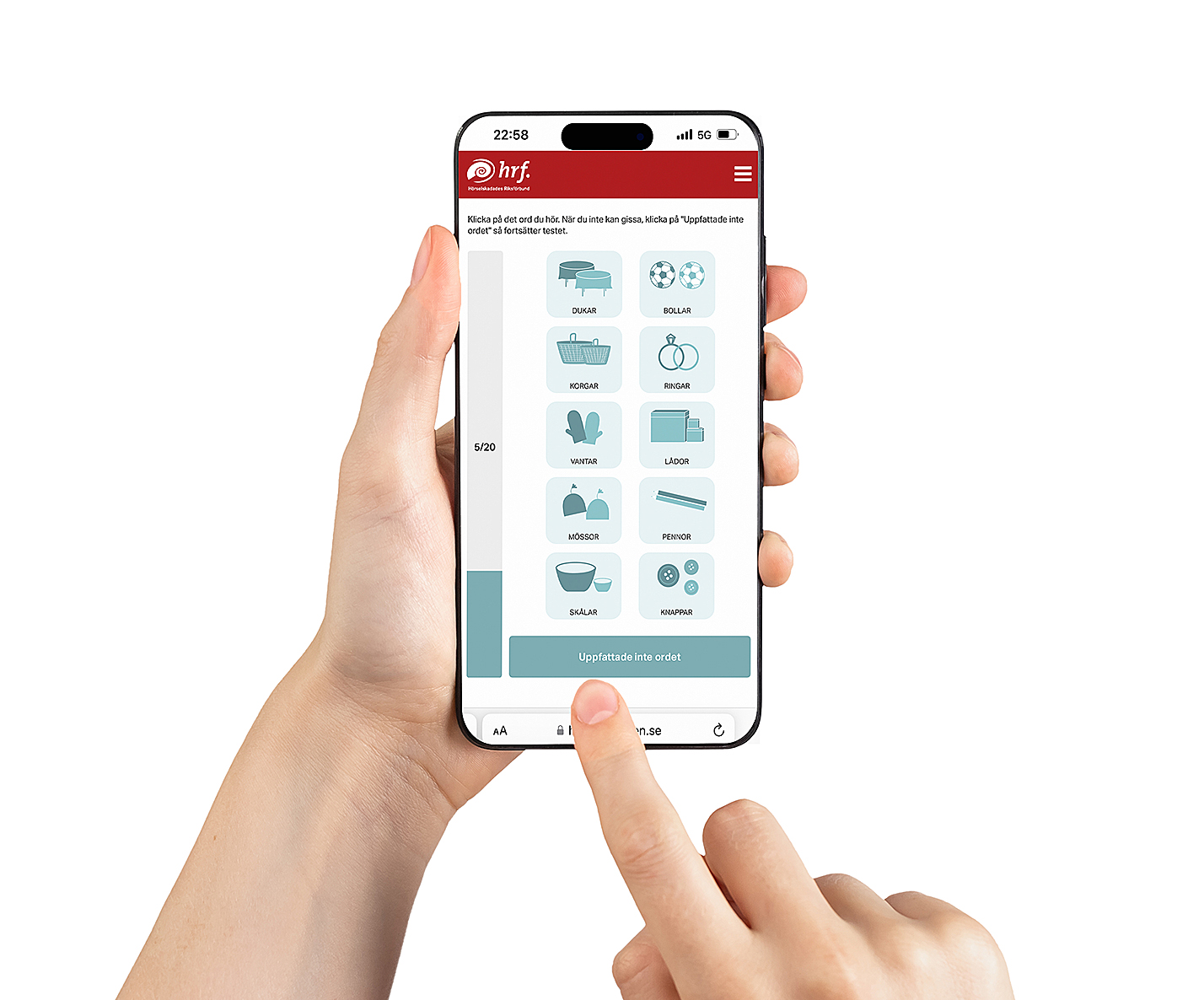 Testet kostar ingenting och går att göra direkt i mobilen. I anslutning till testet går det också att ställa frågor till HRFs hörselrådgivare, via telefon eller mejl.