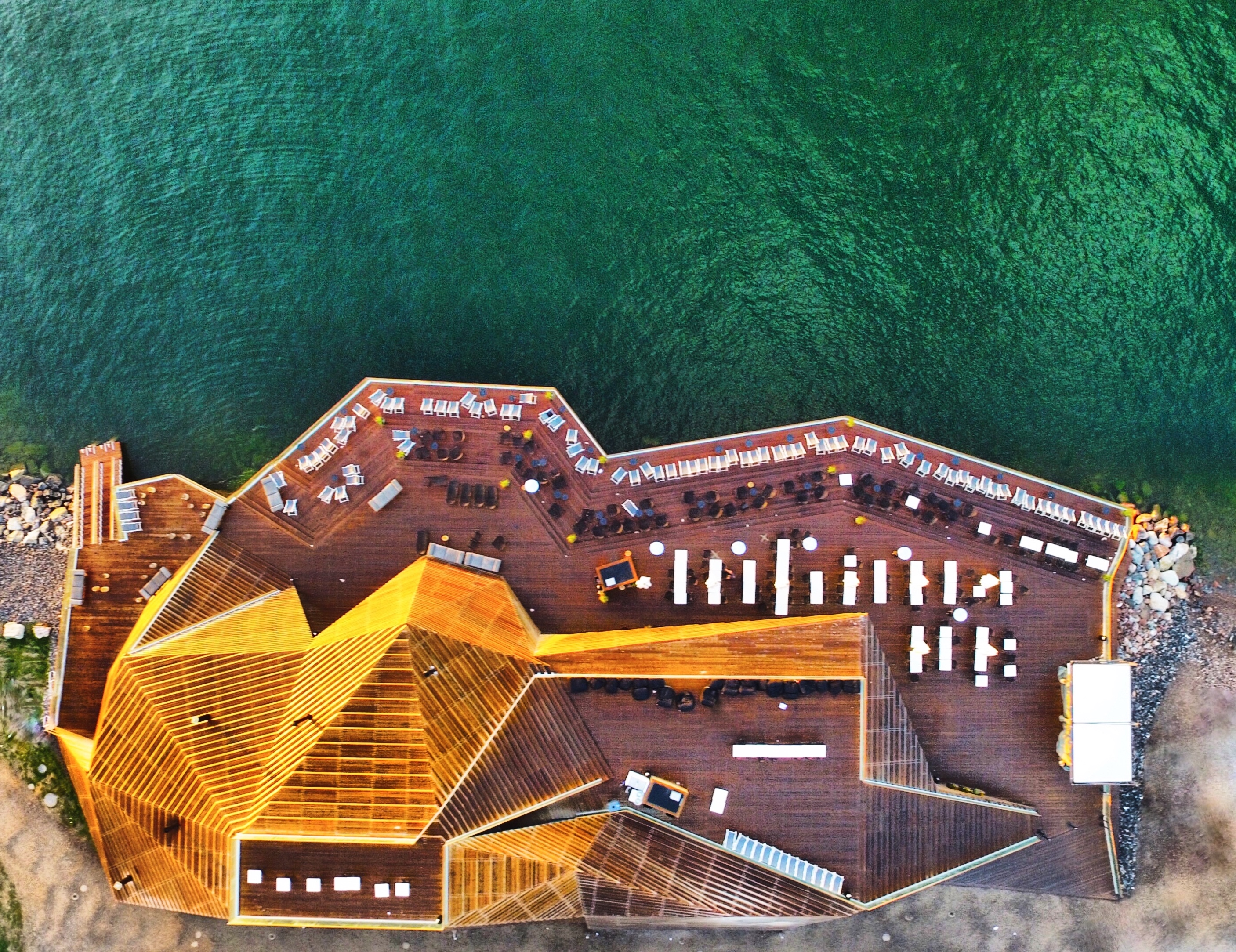 Löyly – ett måste när du besöker den finska huvudstaden! Här möts traditionell rökbastu och modern design i en perfekt symbios av njutning och möjligheter. Blicka ut över Helsingfors skärgård medan du slappnar av på deras panoramiska terrass, kombinera bastubad med ett uppfriskande dopp i havet eller njut av en förstklassig cocktail från drinkmenyn. När du är redo att säga hejdå till bastuvärmen kan du förflytta dig till restaurangen för att avnjuta en festmåltid med delikatesser som färsk sill, rökt lax och perfekt grillad rådjursbiff. Och varför inte stanna kvar till kvällen när den avkopplande atmosfären övergår till fest?