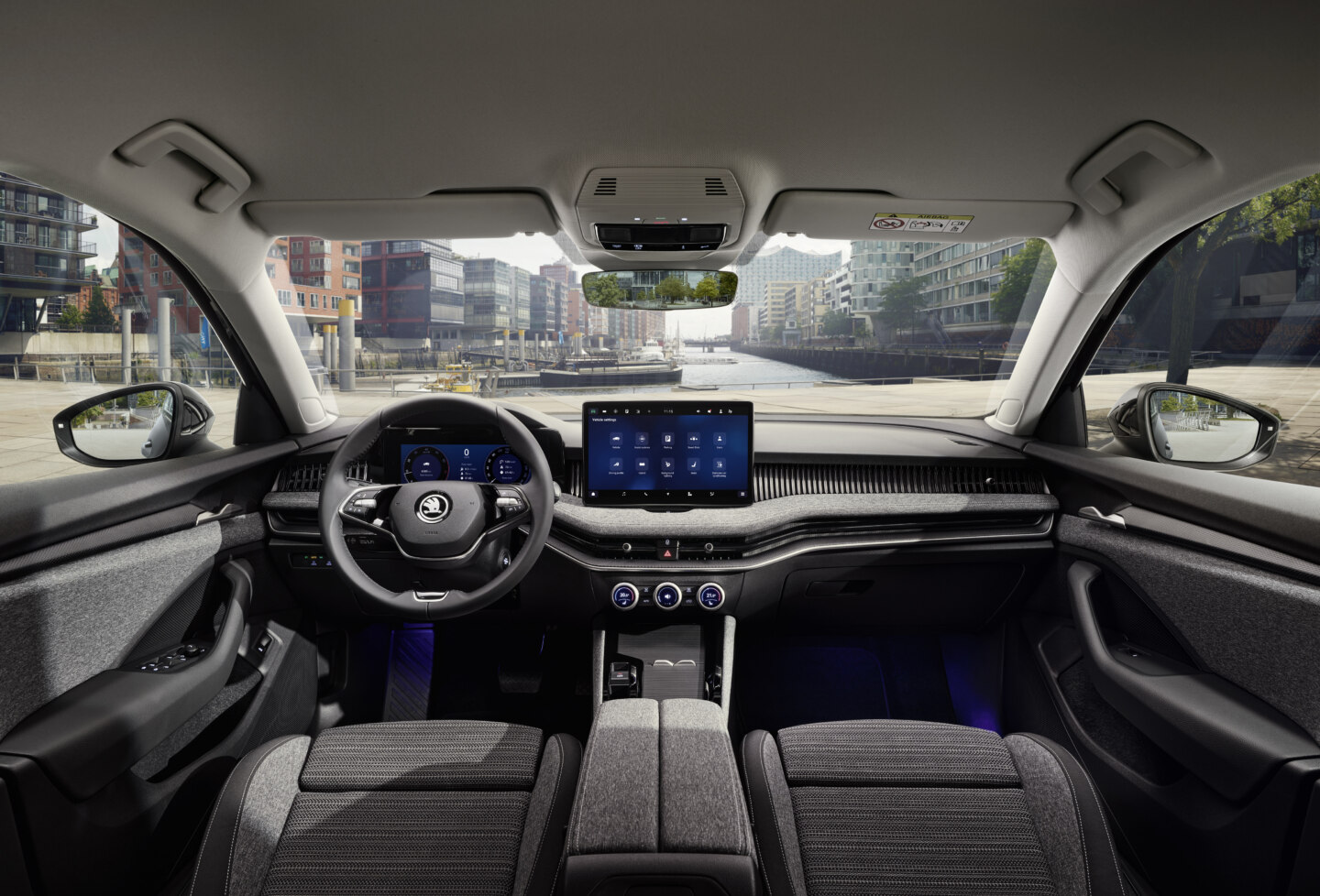 Interiören bjuder också på en mer renodlad design, där växelspaken är monterad på ratten och resulterar i en mer välorganiserad mittkonsol med mer utrymme. Infotainmentskärmen är nu fristående och mäter upp till 13 tum och kompletteras av en 10-tums virtuell instrumentbräda. Dessutom kan nya Superb för första gången också fås med head-up display så att föraren slipper lyfta blicken från vägen.