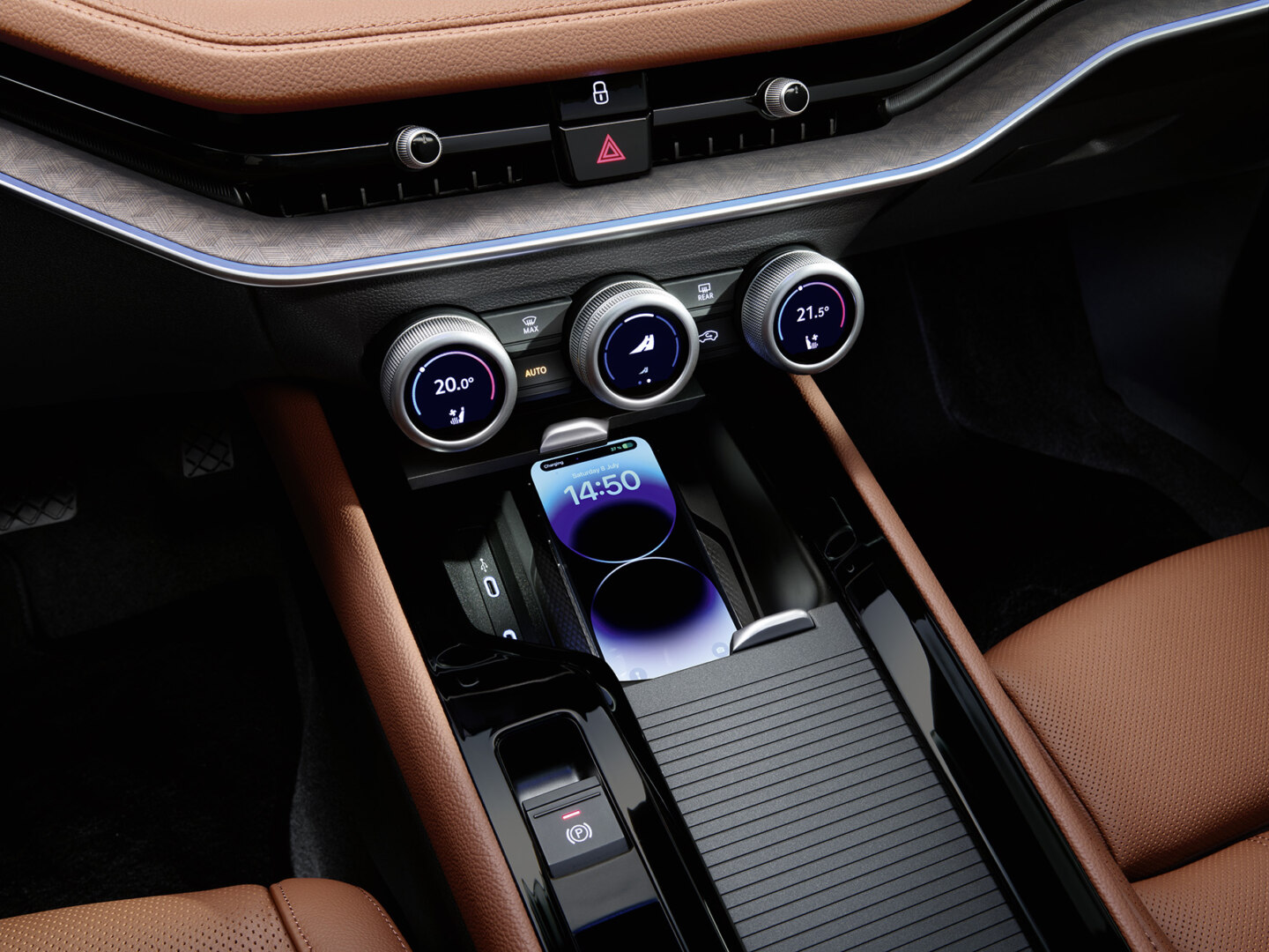 På insidan av nya Superb återfinns de nyligen presenterade Škoda Smart Dials - programmerbara klimatkontrollsreglage. De kan, förutom att styra temperaturen i bilen, även programmeras för att styra de funktioner som är viktiga för respektive förare, exempelvis volymen till infotainmentsystemet eller bilens uppträdande på vägen. De tre reglagen har inbyggda 32-millimeters skärmar, där det programmerbara mittreglaget visar aktuell funktion.