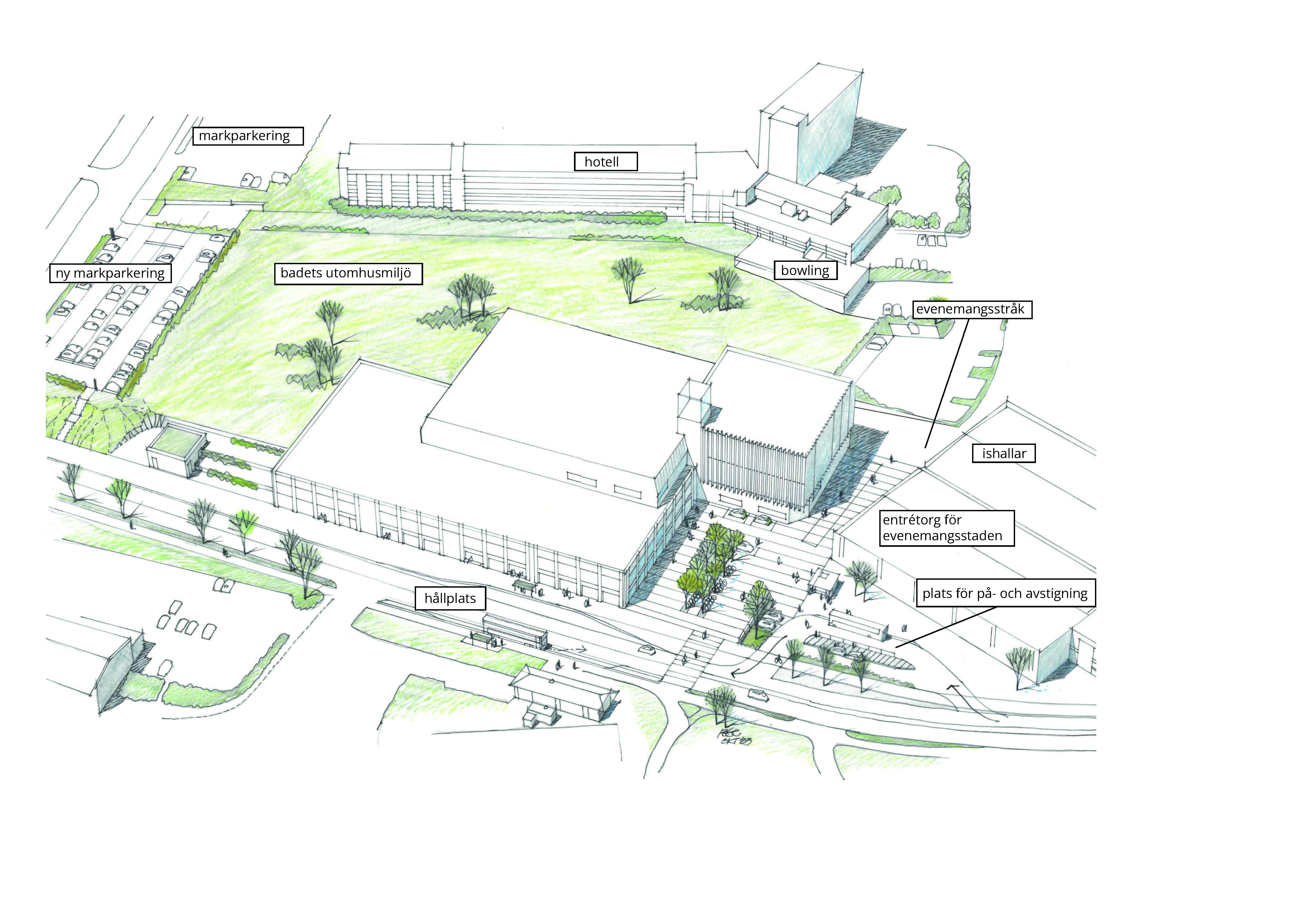 Stefan Livs gata ska enligt förslaget bevaras som evenemangsstråk och knyta ihop badanläggningen med Husqvarna Garden och mässområdet på Elmia.