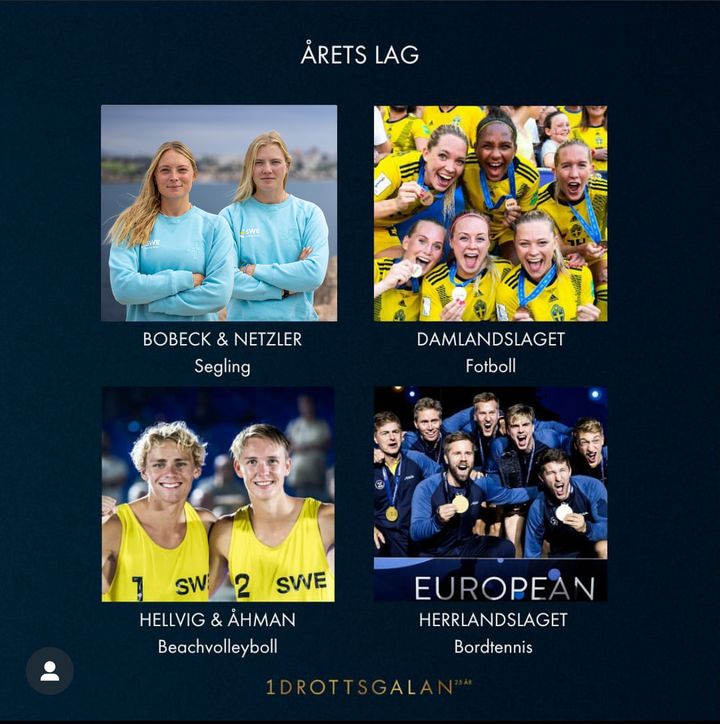Idag offentliggjordes att landslagsseglarna i 49er FX Vilma Bobeck och Rebecca Netzler är nominerade till Idrottsgalan 2023 i kategorin Årets Lag. Övriga nominerade är Damlandslaget i Fotboll, Herrlandslaget i Bordtennis och Hellvig & Åhman i Beachvolley. Vinnarna tillkännages under Idrottsgalan i Globen 22 januari 2024.