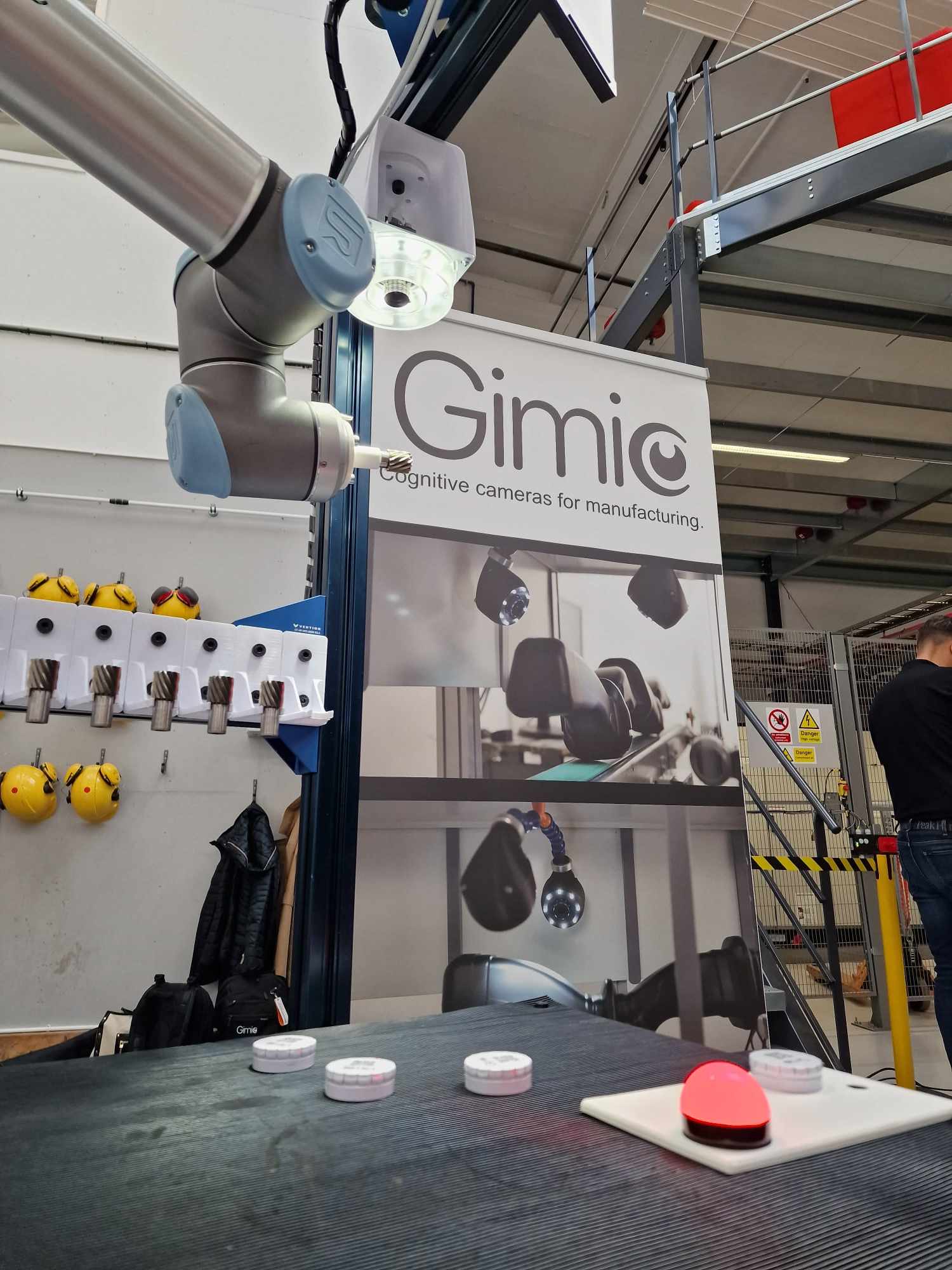 AI kopplat till cobotar förbättrar inte bara montering, plock och palletering. Det kan även förbättra kvalitén. Det svenska företaget Gimic från Växjö ”sätter digitala ögon i produktionslinjerna”. Gimic använder cobotar från Universal Robots för att antingen hålla kameran och vara flexibel med den eller för att plocka upp detaljer och ta dem till kameran. Bilden analyseras sen av AI.