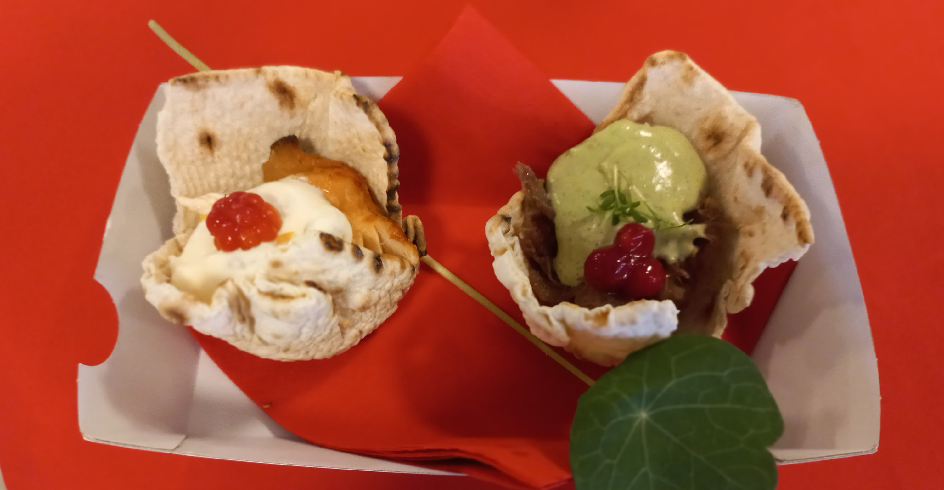 De aptitretande tunnbrödkorgarna innehåller stekt röding med hjortonsås respektive kokt renkött med örtcreme och lingon.