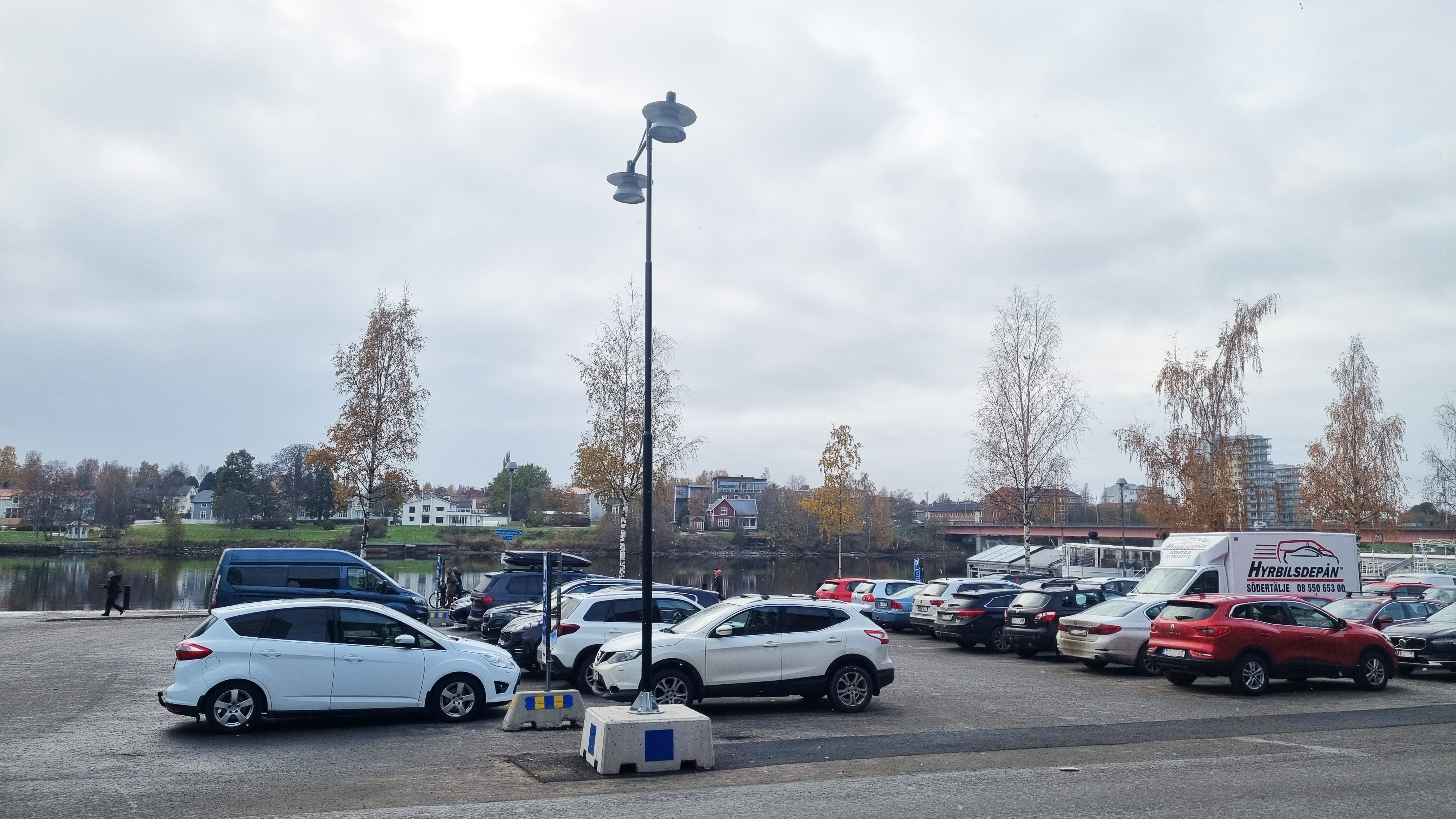 I stället för att människor ska kunna ströva längs vattnet eller att platsen används till bostäder eller grönytor breder sig en stor parkeringsplats ut sin asfalt i de centrala delarna av staden.