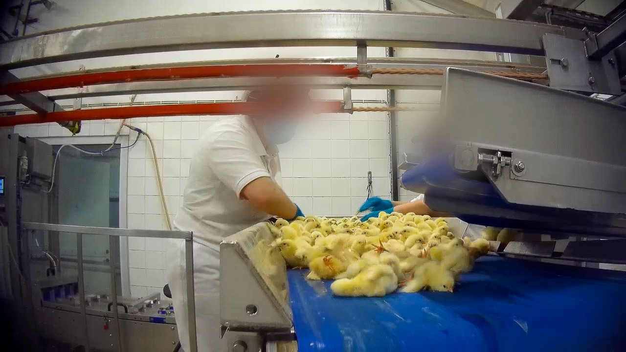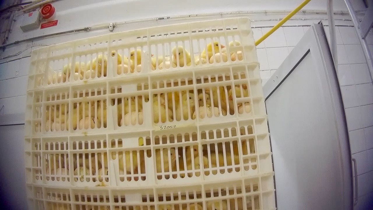 Idag exponerar Djurrättsalliansen ytterligare en dold del av kycklingbranschen: ett av Kronfågels två kläckerier, där hundratusentals kycklingar kan kläckas på en dag. För att kunna dokumentera hur kycklingarnas första dag i livet ser ut har Djurrättsalliansen även i detta fall tagit anställning och filmat med dolda kameror.