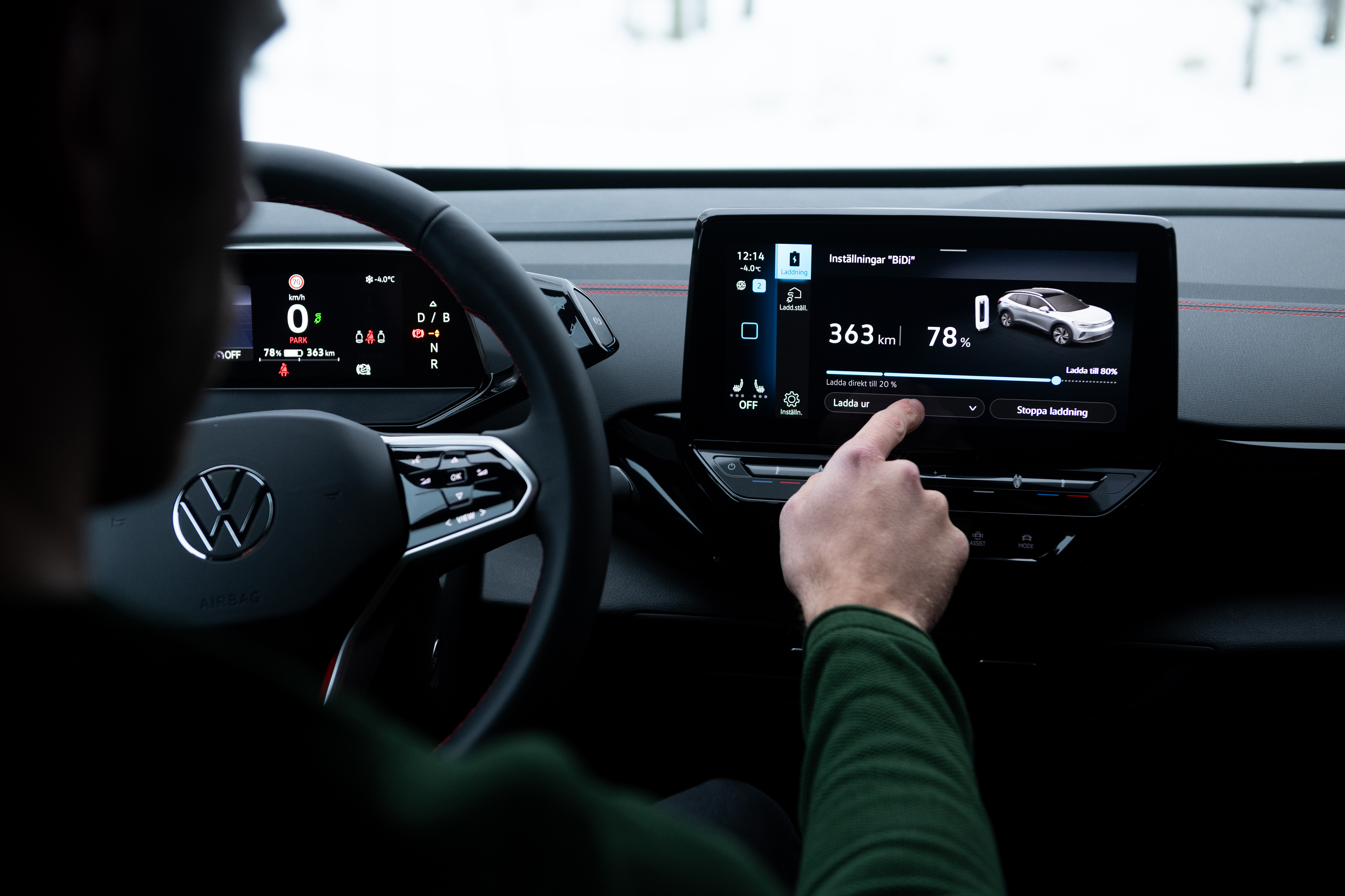 - Dubbelriktad laddning* är möjlig i alla nya ID.-bilar med 77 kWh-batteriet (netto) och från mjukvaruversionen ID. Software 3.5 eller högre